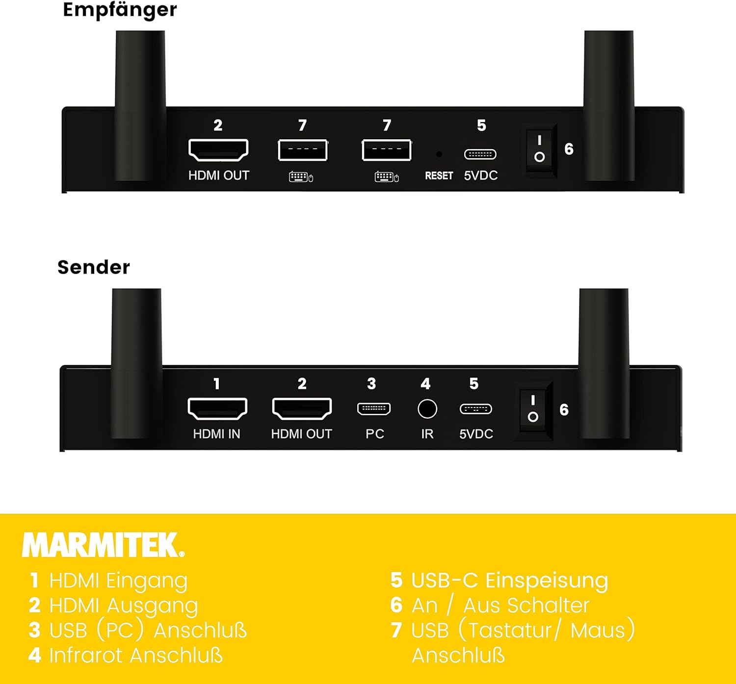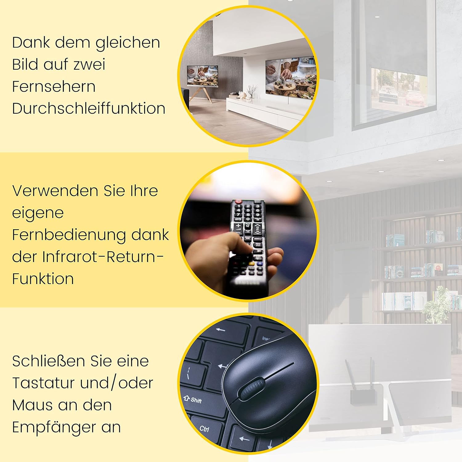- USB UNTERSTÜTZUNG - Schliessen Sie Ihre Tastatur und Maus an den Empfänger an und steuern Sie auch Ihren PC fernbedient (KVM)