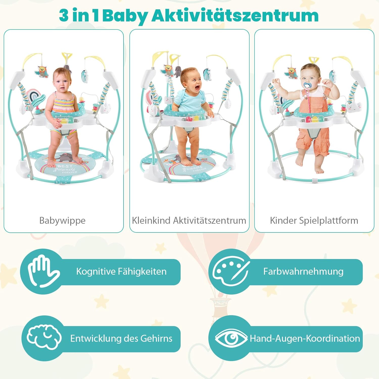 • 🐒3-in-1-Spielcenter - Wenn das Fusspolster entfernt wird, dient das Jumperoo auch als stationäres Aktivitätscenter für Kleinkinder oder als Spielplattform für Kinder, um sich an das Wachstum von Kindern über 6 Monaten anzupassen.