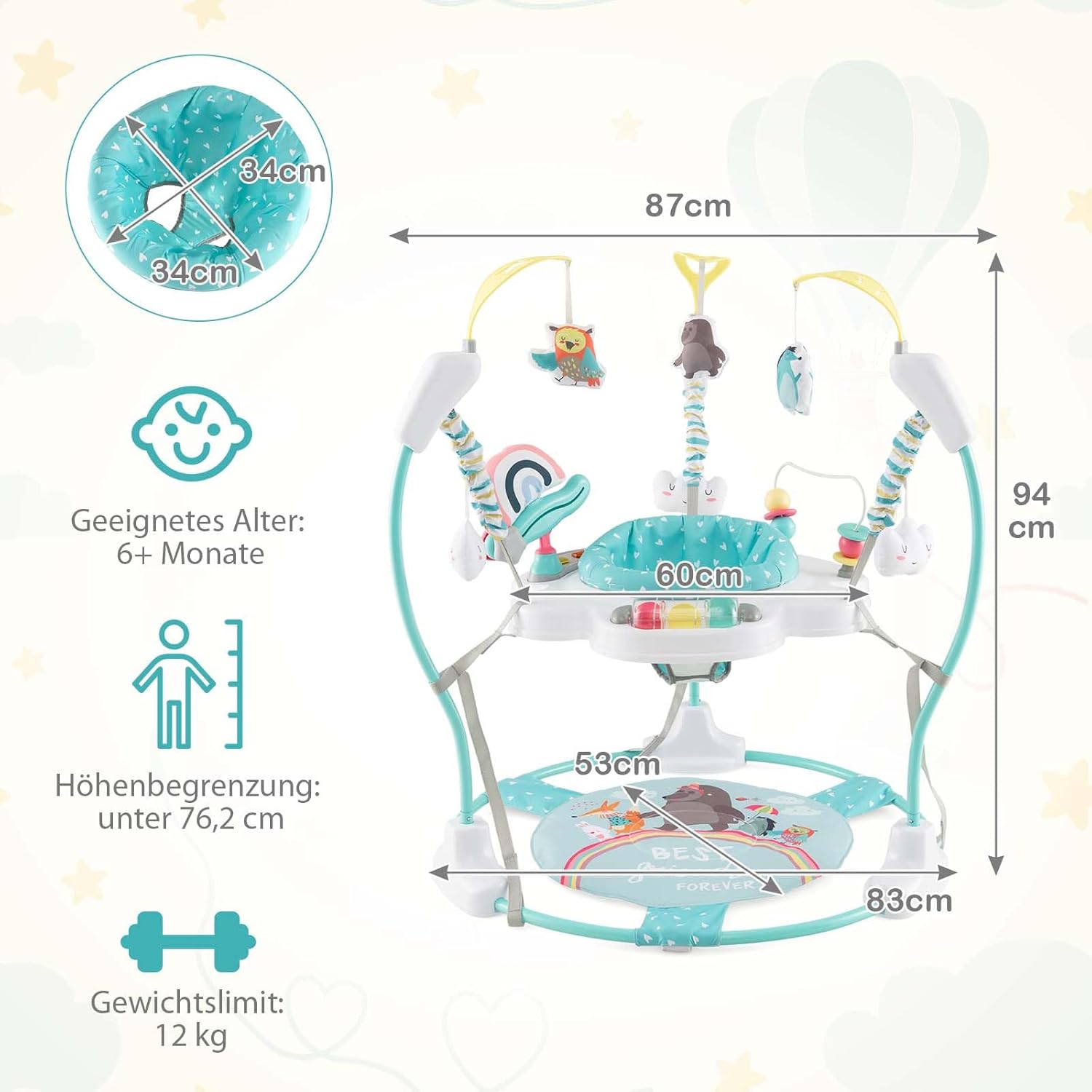 • 🐻3-stufige Höhenverstellung - Dieses Baby-Aktivitätszentrum ist mit 3 einstellbaren Höhen von 45 cm, 49,5 cm bis 53 cm ausgestattet und eignet sich für Babys unter 76 cm Körpergrösse und unter 12 kg Gewicht. Zum Verstellen können Sie einfach am