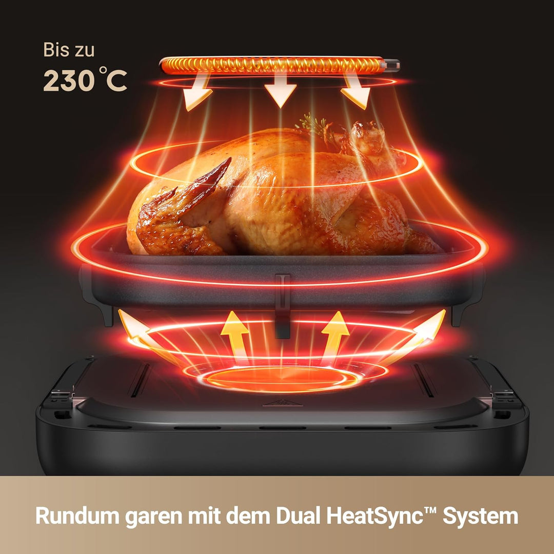 - Kulinarische Entdeckungsreise mit weniger Öl und mehr Genuss: Mit 1800 W ermöglicht der AeroChef schnelles knuspriges Garen bei bis zu 230 °C. Die duale Beheizung sorgt für einen gleichmässigen, energieeffizienten Garvorgang. Der speziell