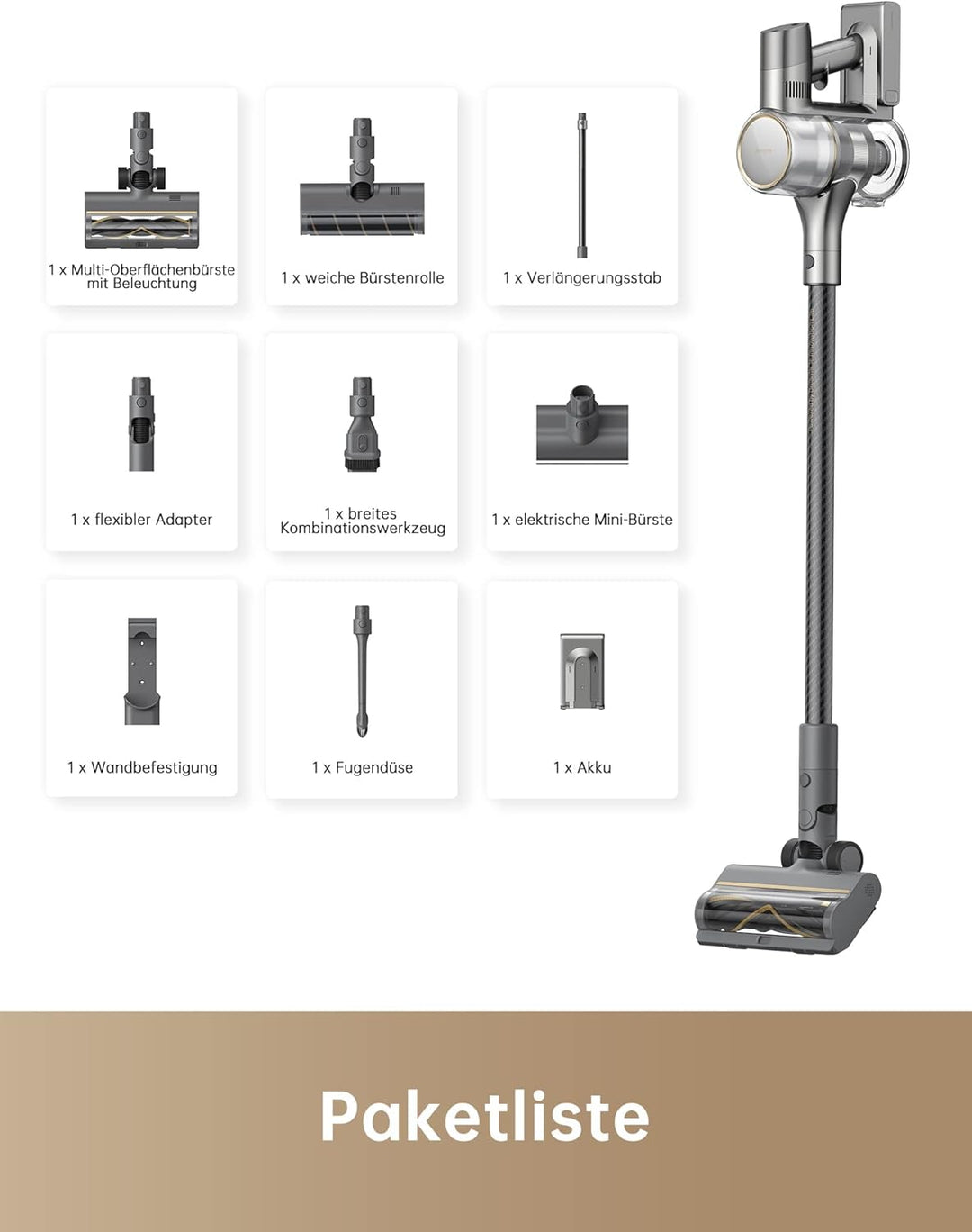 - Kluge Funktionen: Der R20 mit seiner kraftvollen 190AW-Saugleistung, intelligenter Stauberkennung und den austauschbaren Bürstenköpfen und Aufsätzen bieten effektive Reinigung für jede Oberfläche