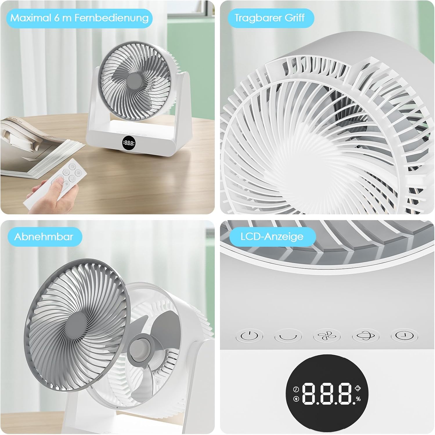 - 【Touchpad und Fernbedienung】Steuern Sie alle Funktionen bequem über das elegante ventilator klein-Touchpad oder die mitgelieferte Fernbedienung – mit 360°-Signalabdeckung und bis zu 6 m Reichweite. Ob im Bett, auf dem Sofa oder am Schreibtisch: