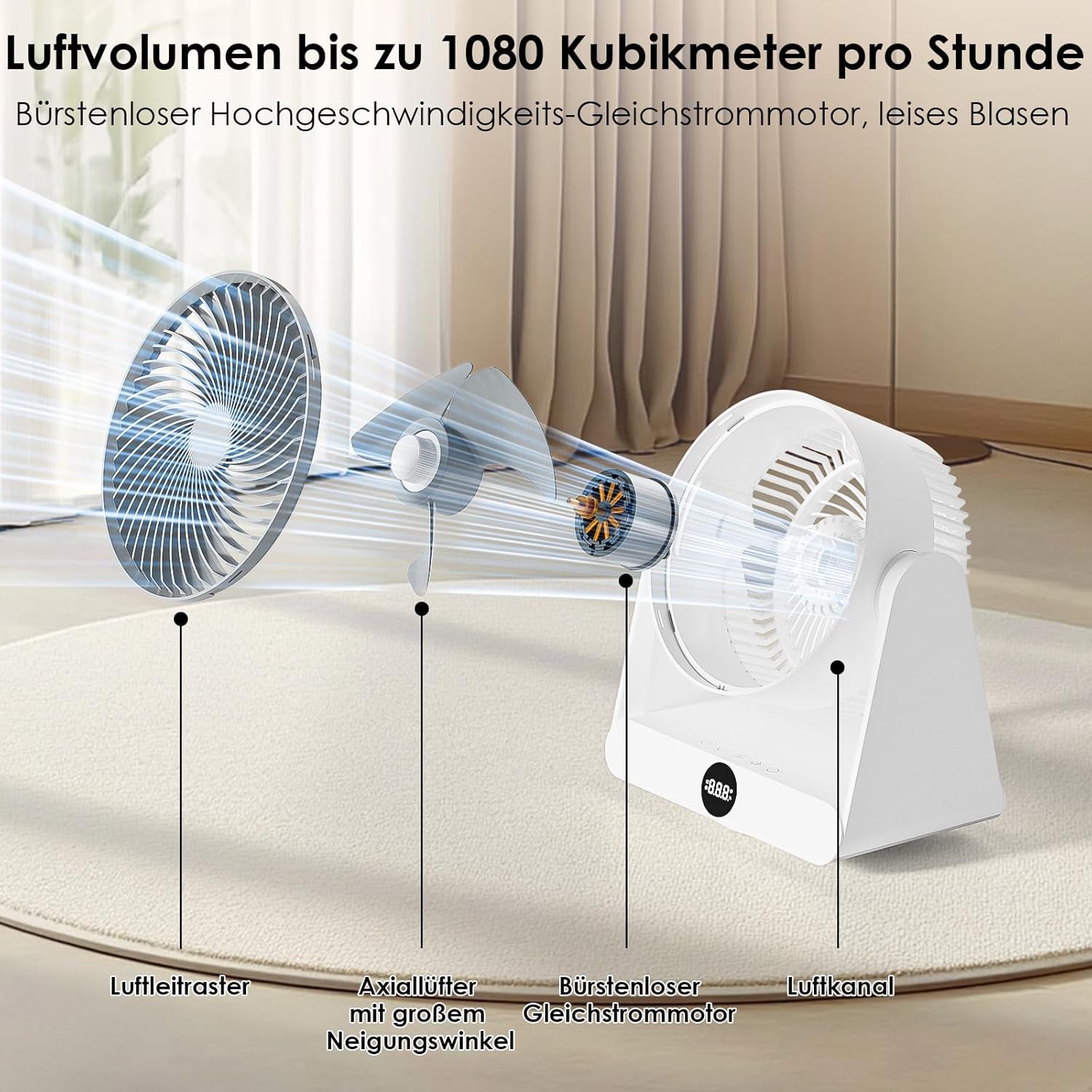 - 【Überall erfrischend kühle Luft】Ausgestattet mit einem leistungsstarken 25W-Gleichstrom-Wechselrichtermotor und einem optimierten Luftkanalsystem erzeugt dieser tischventilator einen intensiven Luftstrom – bei gleichzeitig bis zu 80 % geringerem