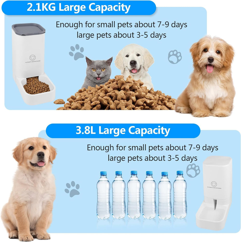 - Automatische Fütterung und Wasserversorgung: Dieses Set enthält sowohl einen futterautomat katze als auch einen Wasserspender, um Bequemlichkeit zu bieten und sicherzustellen, dass Ihre geliebten Haustiere immer gut gefüttert und hydriert sind.