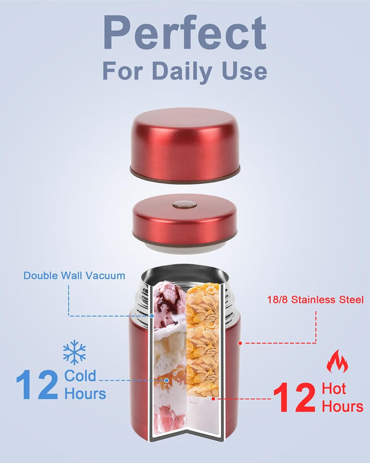 - TRANSPORTBEHÄLTER: Ob als Lunchbox Erwachsener für die Arbeit, oder Lunchbehälter Kinder für Schule, dieser Thermos eignet sich optimal für warme Nudelgerichte, leckere Snacks, deftige Suppen.