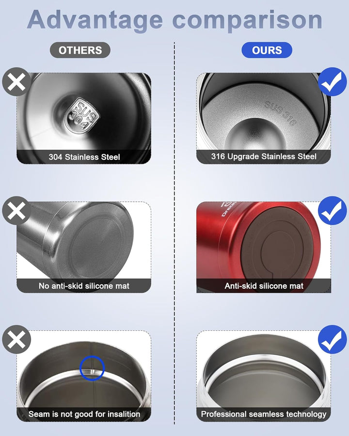 - LÄNGER HEISS/KALT HALTEN: Diese grosse Thermobehälter aus hochwertigem Edelstahl 316 hält die Temperatur bis zu 12 Stunden, sodass Ihre Speisen im robusten Thermobecher immer heiss oder kalt geniessbar bleiben egal ob in der Schule, auf Reisen oder im