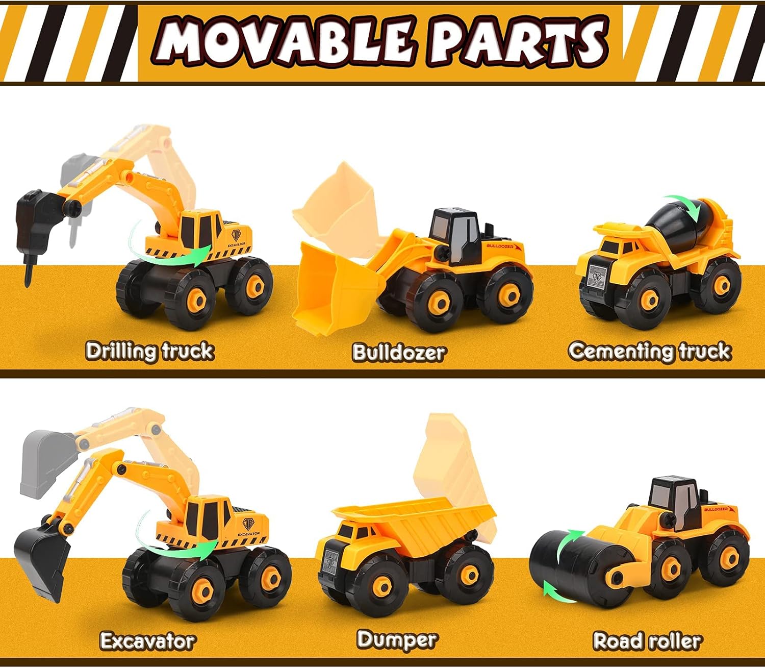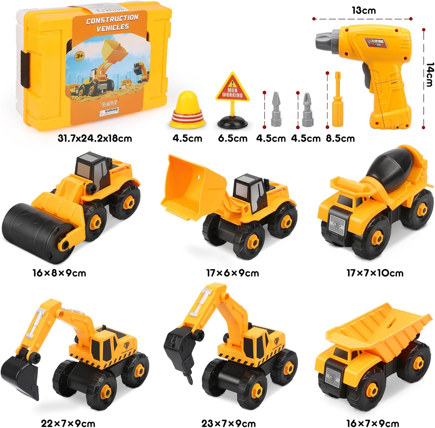 - 【Montage-Baufahrzeug】Inklusive Bagger, Traktor, LWK, Elektro-Drill und Handbuch, alles in der Aufbewahrungsbox.