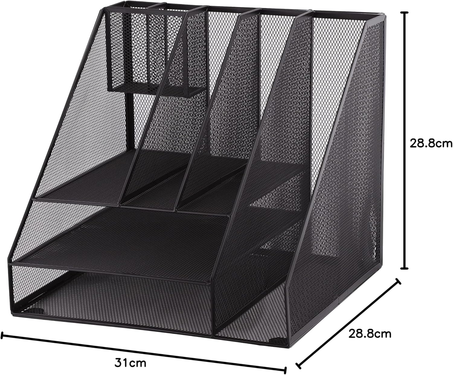 - Ausgestattet mit 8 Fächern: 2 horizontale Fächer für A4-Dokumente, 2 vertikale Fächer für Dokumente, A4-Kataloge, 2 vertikale Korrespondenzfächer, 2 vertikale Fächer für Schreibwaren und 1 Farbe für kleines Bürozubehör, z.B. Hefter, Locher,