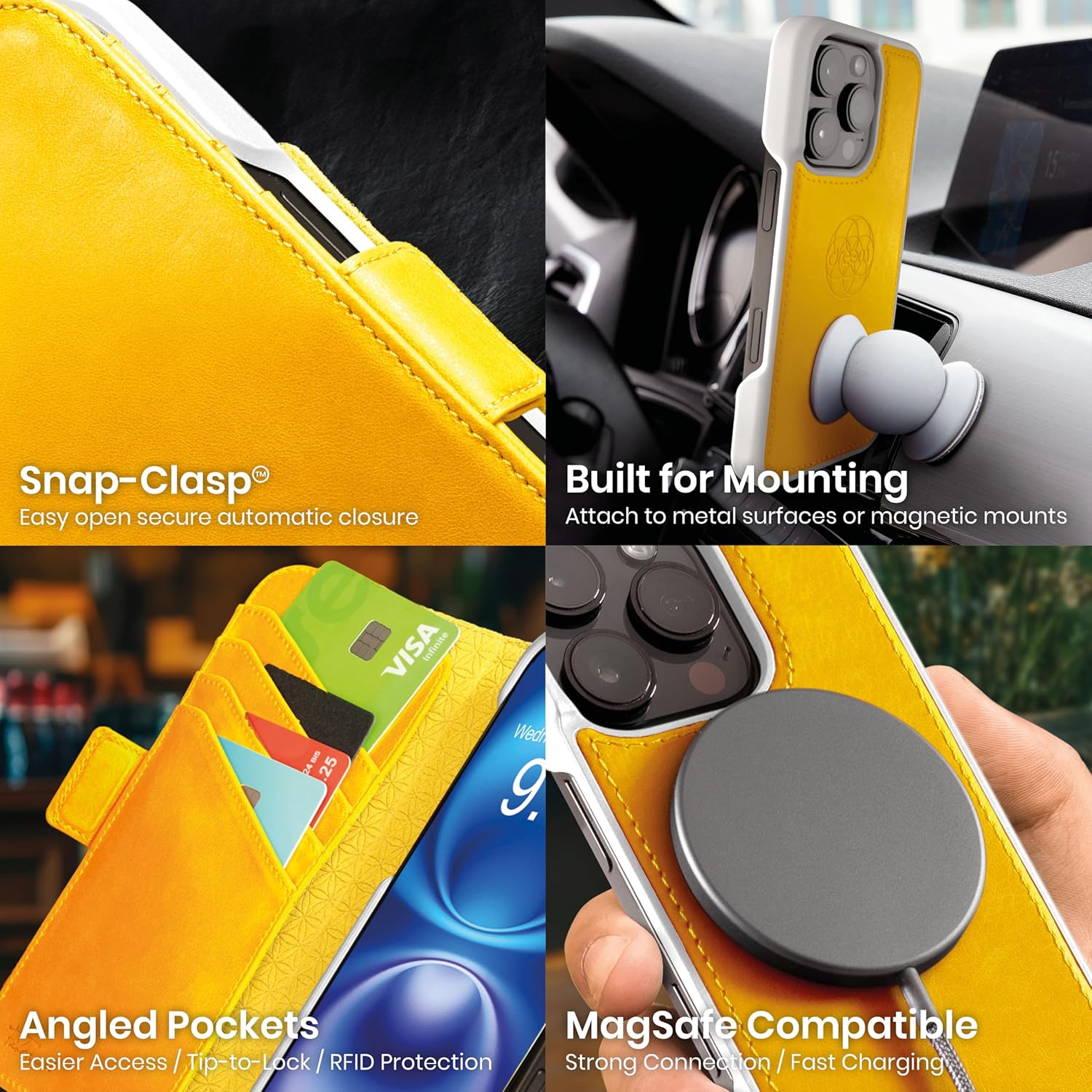 • FUNKTIONALITÄT - Die Dreem Fibonacci Brieftasche bietet eine vielseitige Ansicht - vertikal und horizontal, verankert durch einen robusten Magnetverschluss. Nahtlos kompatibel mit MagSafe-Ladestationen und -Zubehör, ermöglicht es das Aufladen, ohne