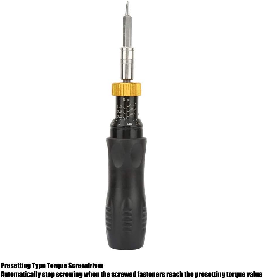 • Bereich: Das voreingestellte Drehmoment ist von ,2 Nm bis 1,2 Nm, ,2 Nm Teilung, ± 5% Genauigkeit und Präzision für Ihre Arbeit einstellbar.