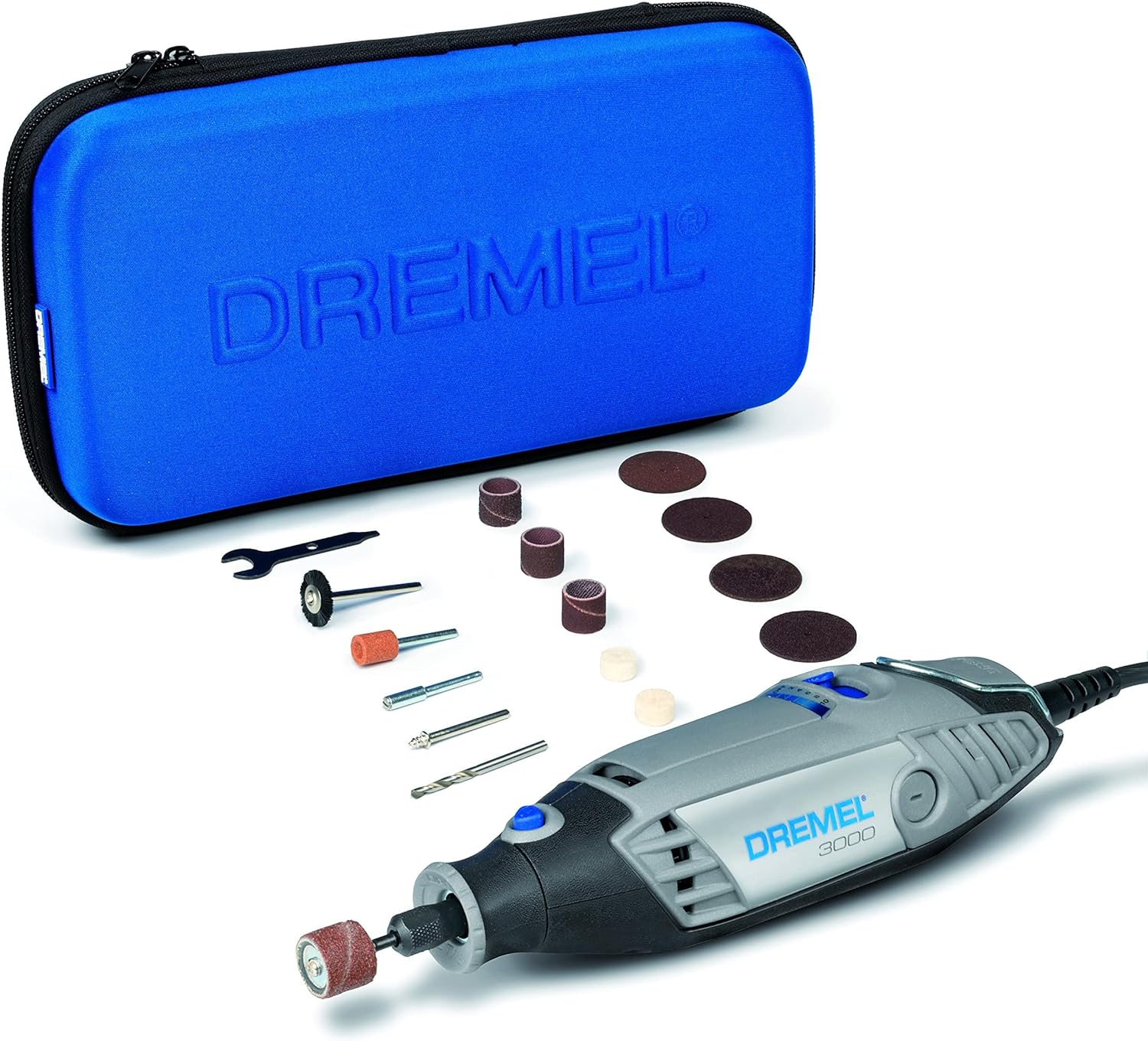 - LIEFERUMFANG: 1x Dremel 3000 Multitool; 15x Dremel Zubehör, 1x Werkzeug Softbag mit Reissverschluss