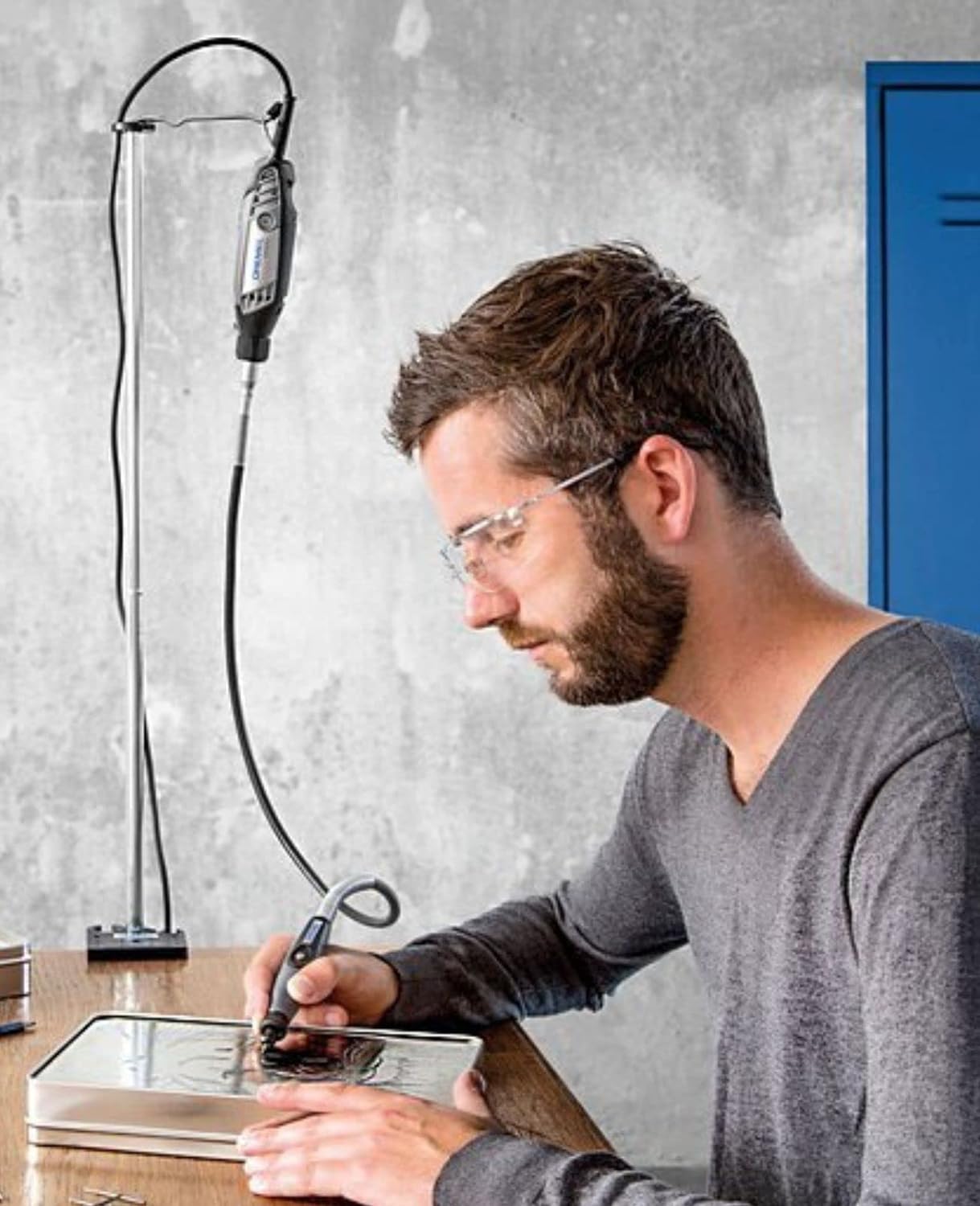 - Die flexible Welle (225) in Kombination mit dem Werkzeughalter (2222), was in diesem Paket enthalten ist, ermöglicht es, Ihr Dremel 4250 Rotationstool über Ihre Werkbank zu aufzuhängen, wodurch Sie wertvollen Arbeitsraum sparen und das Gewicht vom