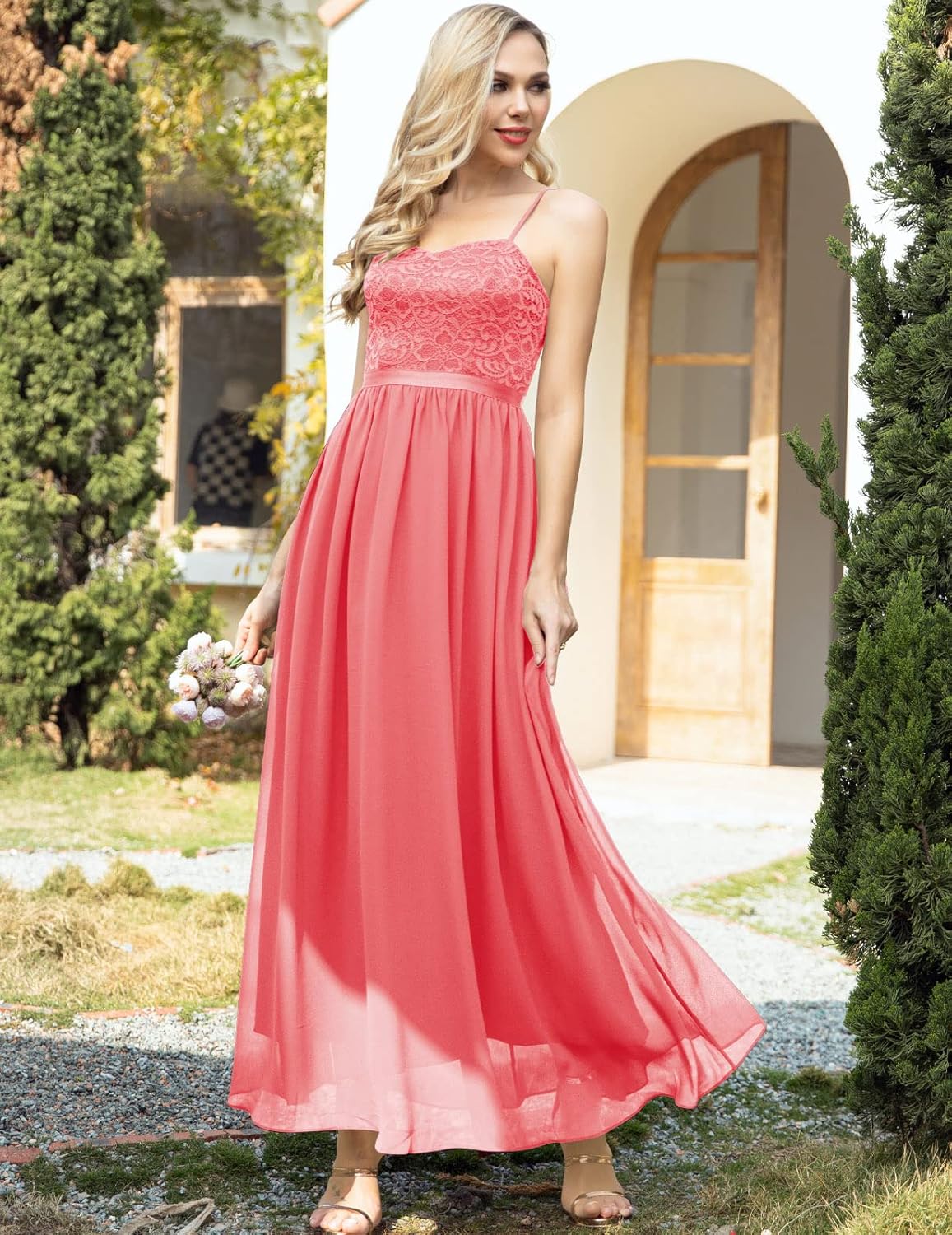 DRESSTELLS Damen Abendkleider Elegant für Hochzeit Brautjungfernkleider Lang Chiffon Brautjungfernkl