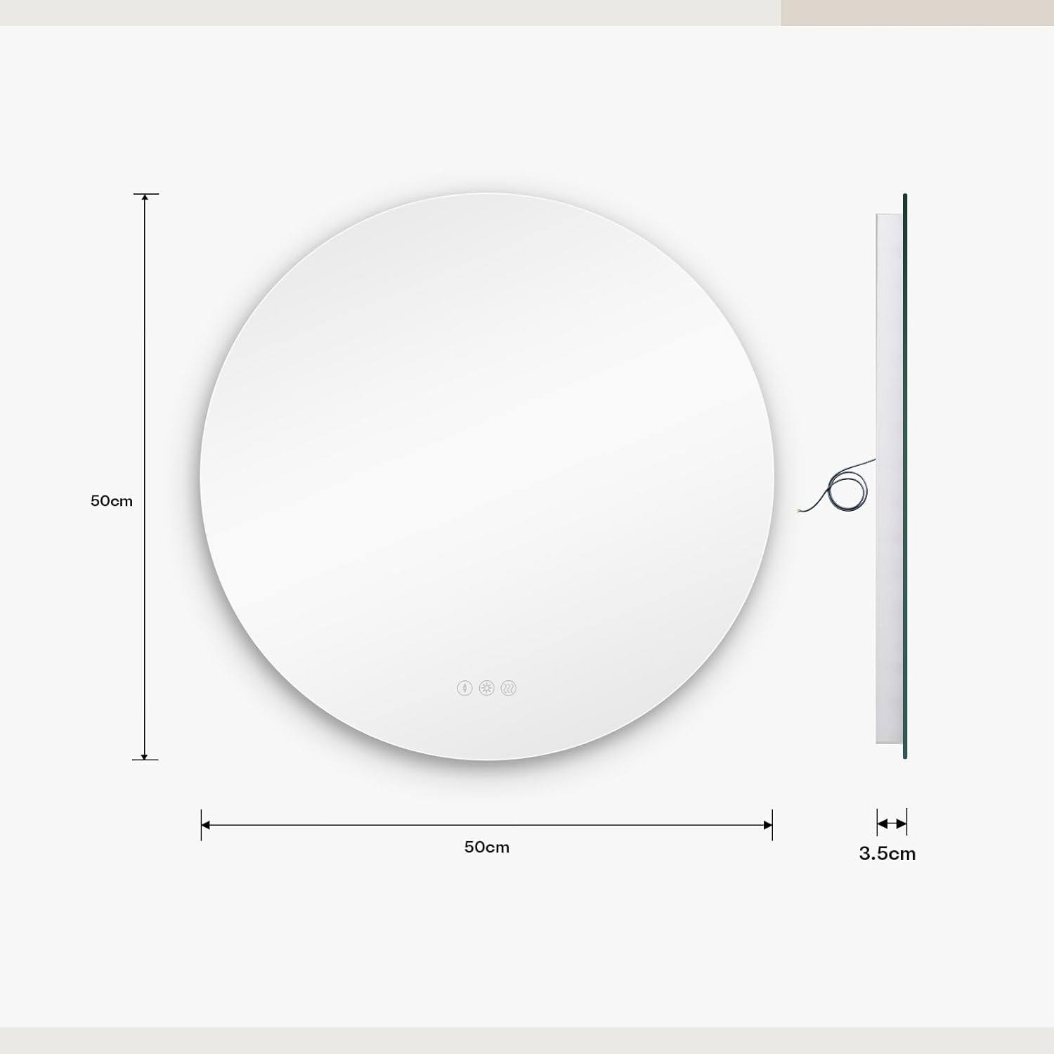 - 3 FARBE & DIMMBAR. Dieser Badspiegel verfügt über eine Dimmfunktion, die über einen Touchschalter gesteuert wird. Es bietet die Möglichkeit, zwischen drei verschiedenen Farbtemperaturen (2700K-Warmweiss, 5000K-Neutralweiss, 6500K-Kaltweiss) zu
