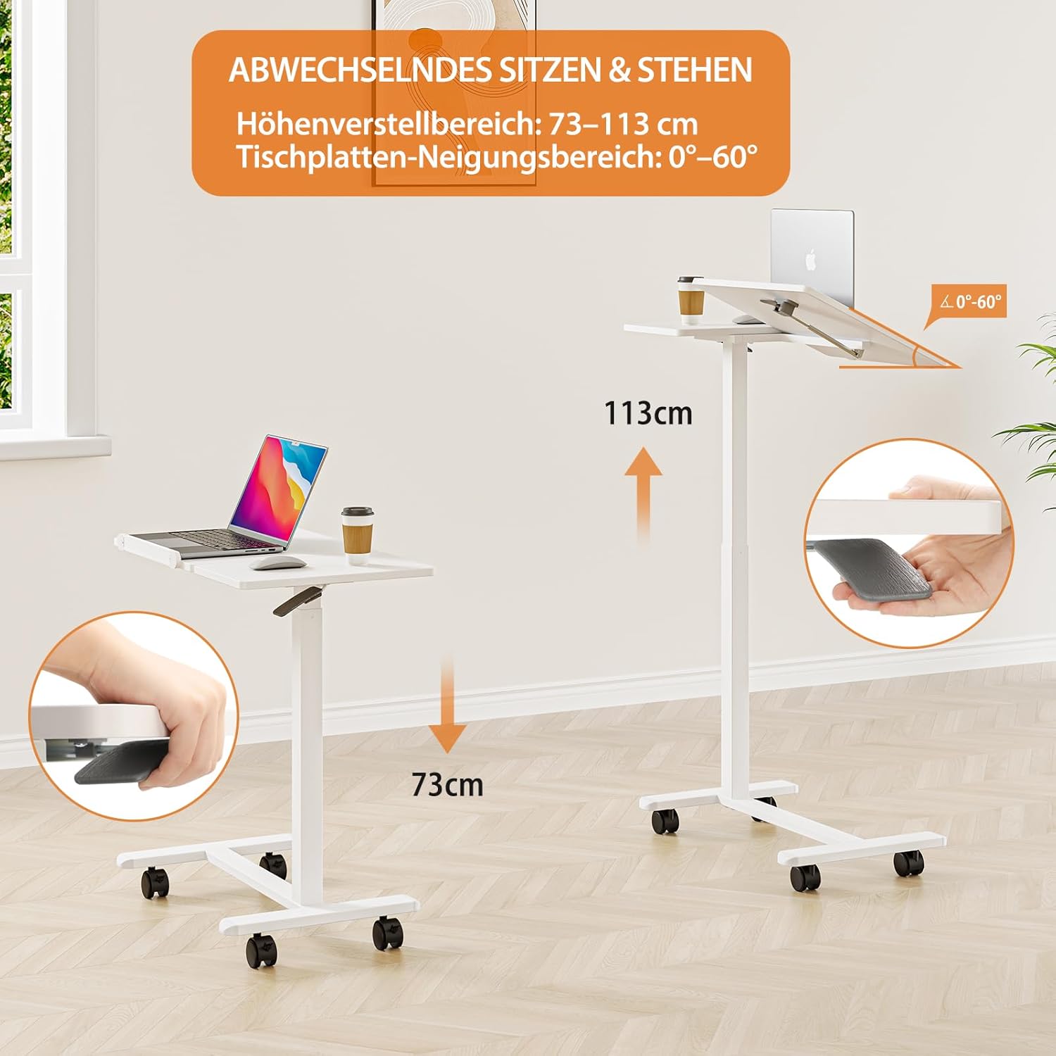 - 【VERSCHIEBAR UND PLATZSPAREND】 Mit 4 schliessbaren Rollen ausgestattet kann dieser Rolltisch über egal Holzboden oder Teppeich gut verschiebt und gestoppt werden, wo Sie möchten. Dank des C-fömigen Designs lässt sich der Sockel unter