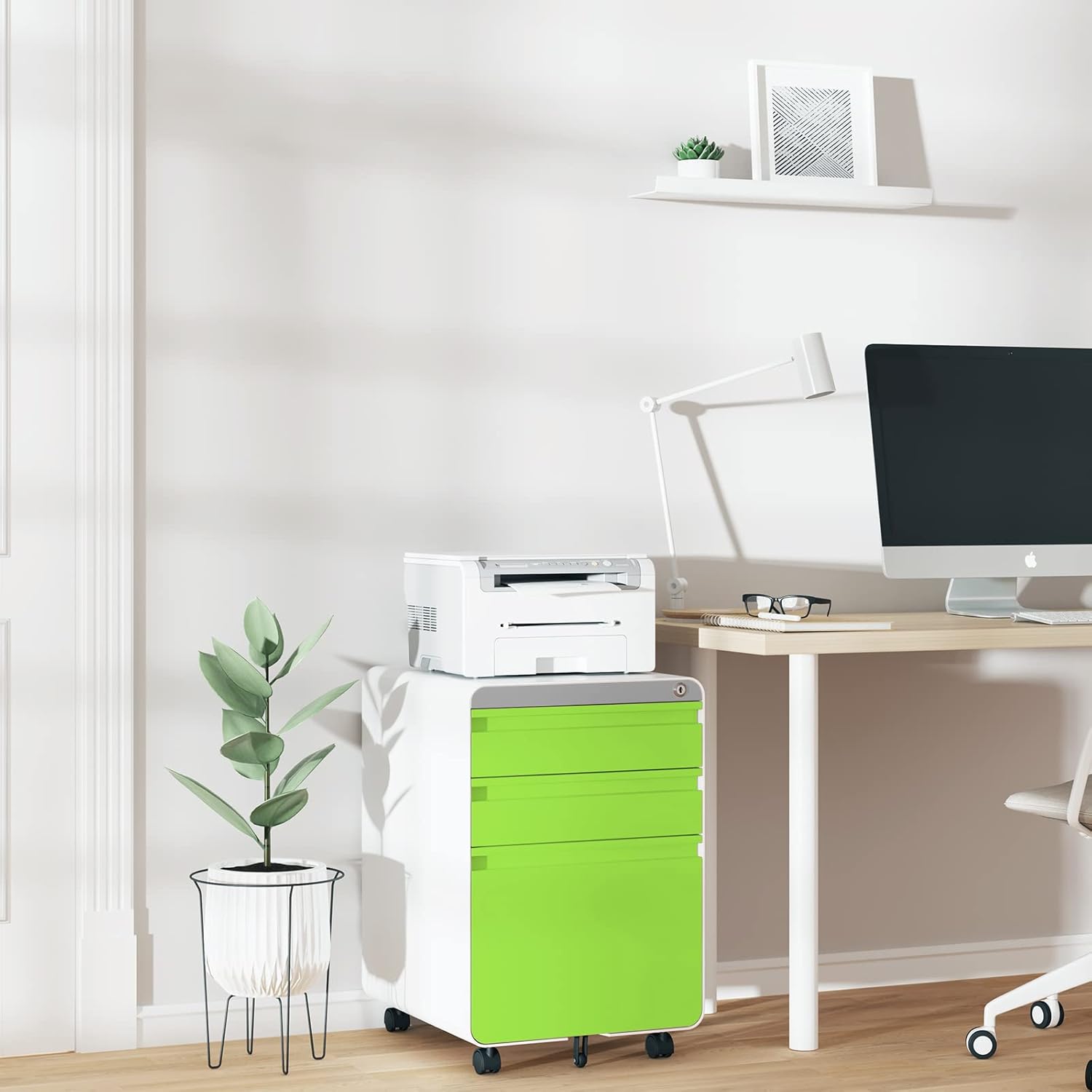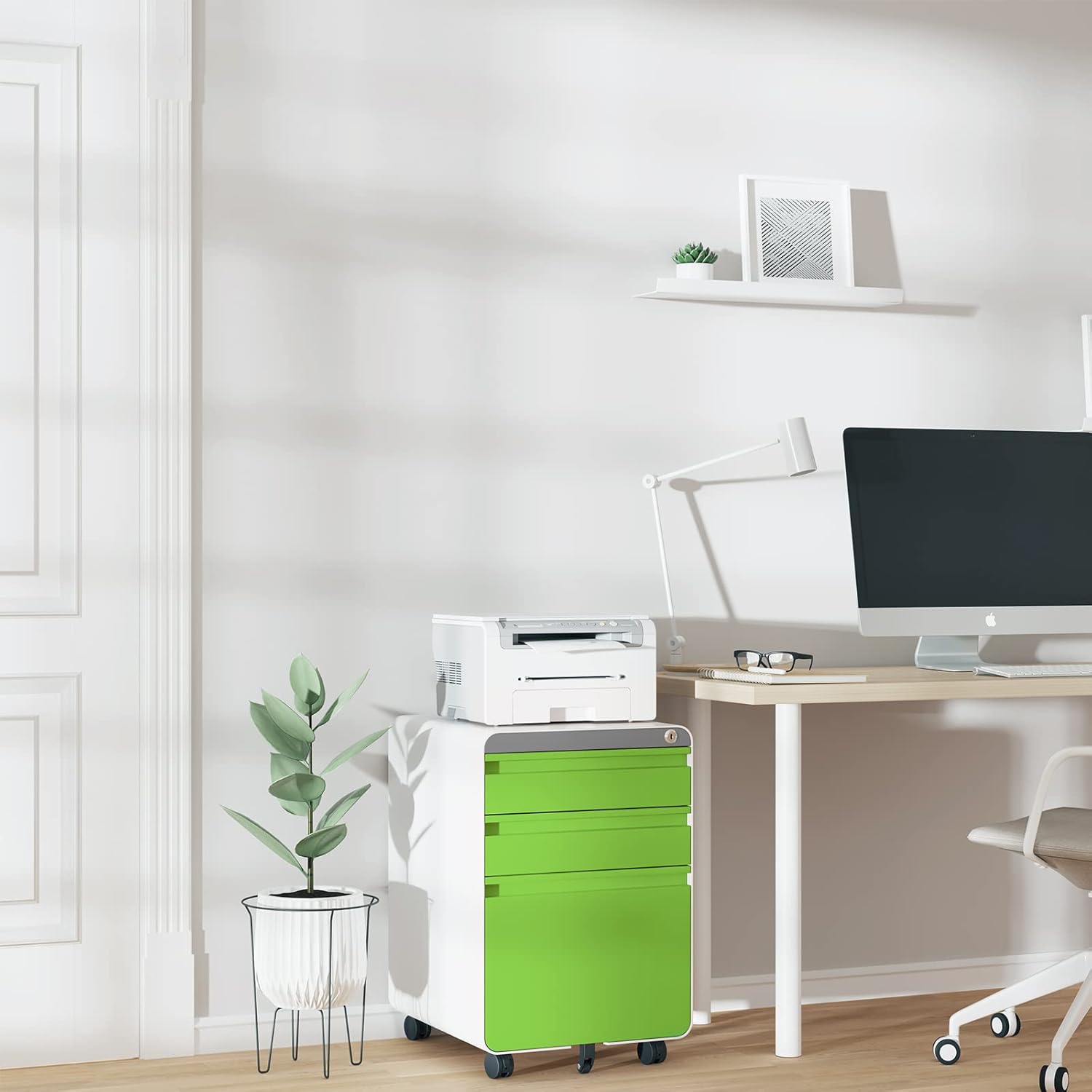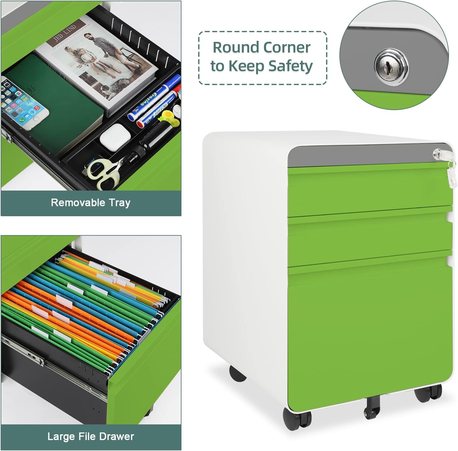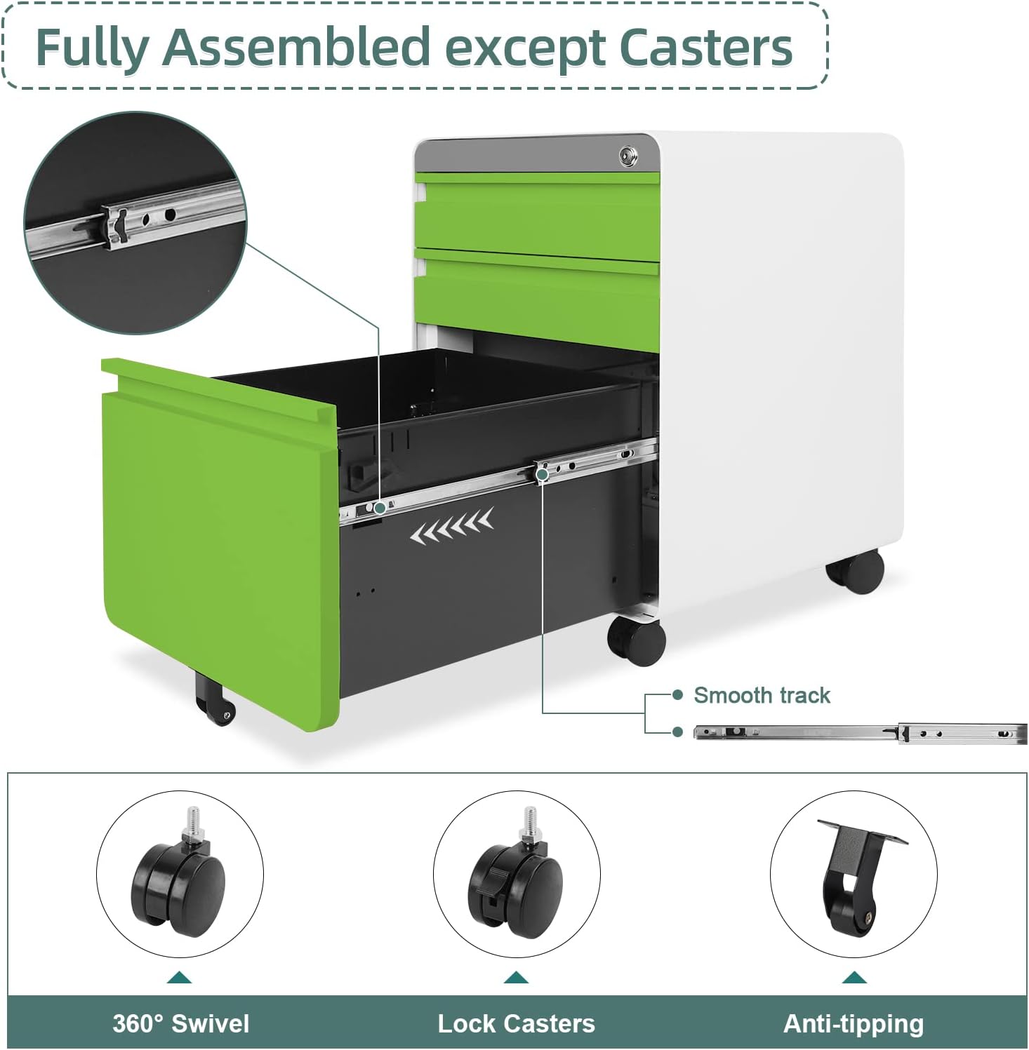 - 【Abschliessbarer mobiler Bürocontainer】: Rollcontainer mit 3 Schubladen, komplett montiert mit 4 Rollen. 1 Schloss sichert alle drei Schubladen. Tipps: 2 Schlüssel sollten bei Verlust separat aufbewahrt werden.🚗Hinweis Ziehen oder werfen Sie die