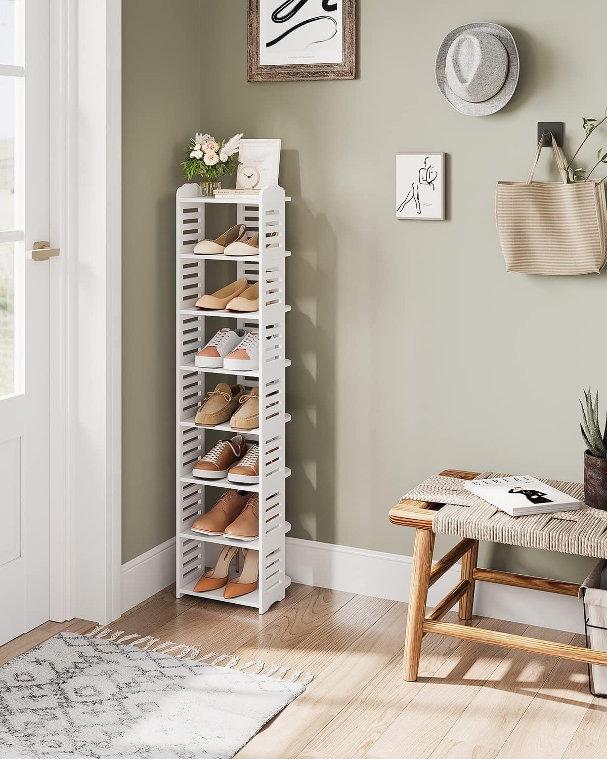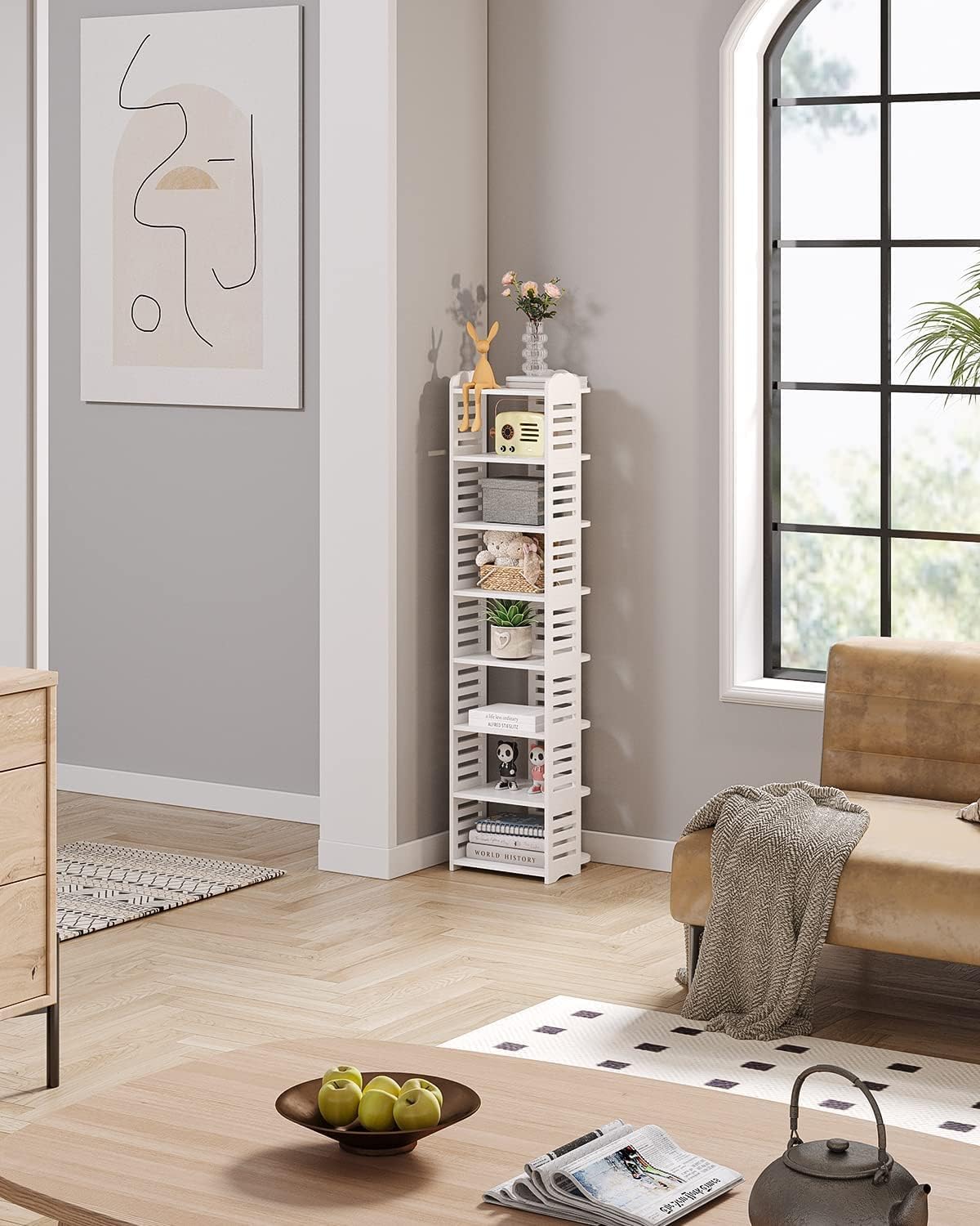 - Vielseitige Aufbewahrung: DiStabil und langlebig: Das Regal besteht aus robustem Holz und strapazierfähigem PVC für eine hohe Belastbarkeit.e offenen Regale bieten ausreichend Platz für Schuhe, Bücher, Dekorationen und mehr.