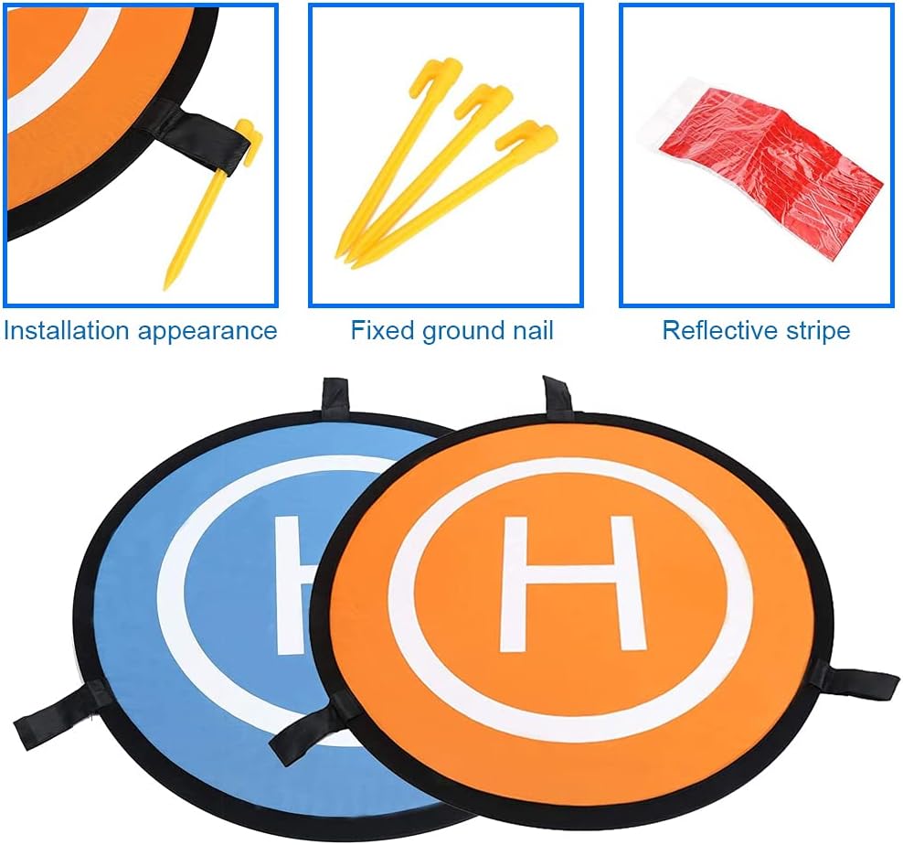 - Das Set enthält 1 x Landeplatz Drohne Landing Pad wasserdicht. Gefaltete Grösse 23 cm, ausgeklappte Grösse 75 cm, 3 Stangen zum Befestigen des Landeplatzes für Drohne am Boden, besonders in windigen Umgebungen, 8 leuchtend gelbe reflektierende