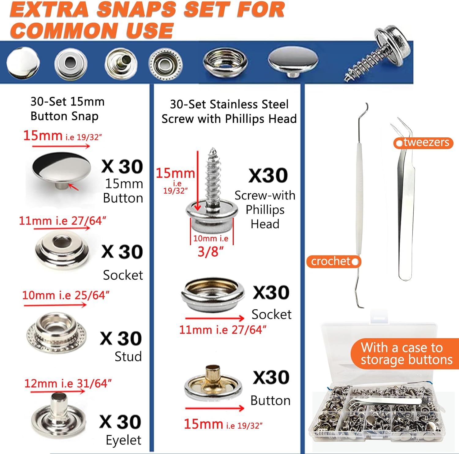 Heavy Duty Profi Druckknopfzange, Druckknopf Set mit Zange, Druckknopf Reparatur Set für Bootsplanen