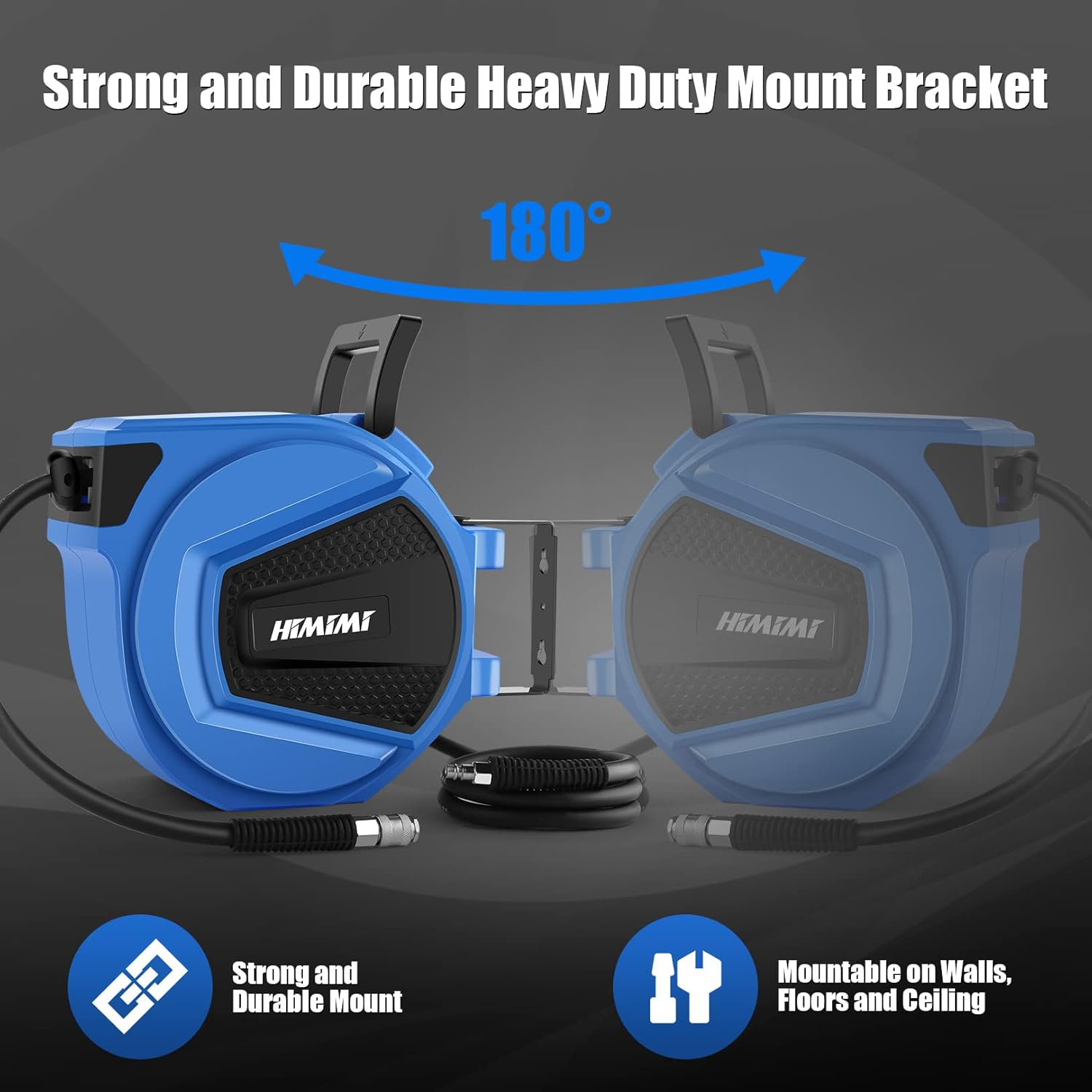 - 【Einfaches Verstauen】Diese druckluftschlauch trommel Inklusive schwenkbarer Metall Wandhalterung, ideal für die Montage in der Werkstatt, Keller, Garage usw. Platzsparend und ultraleichter Zugang zu Ihrem Luftschlauch.