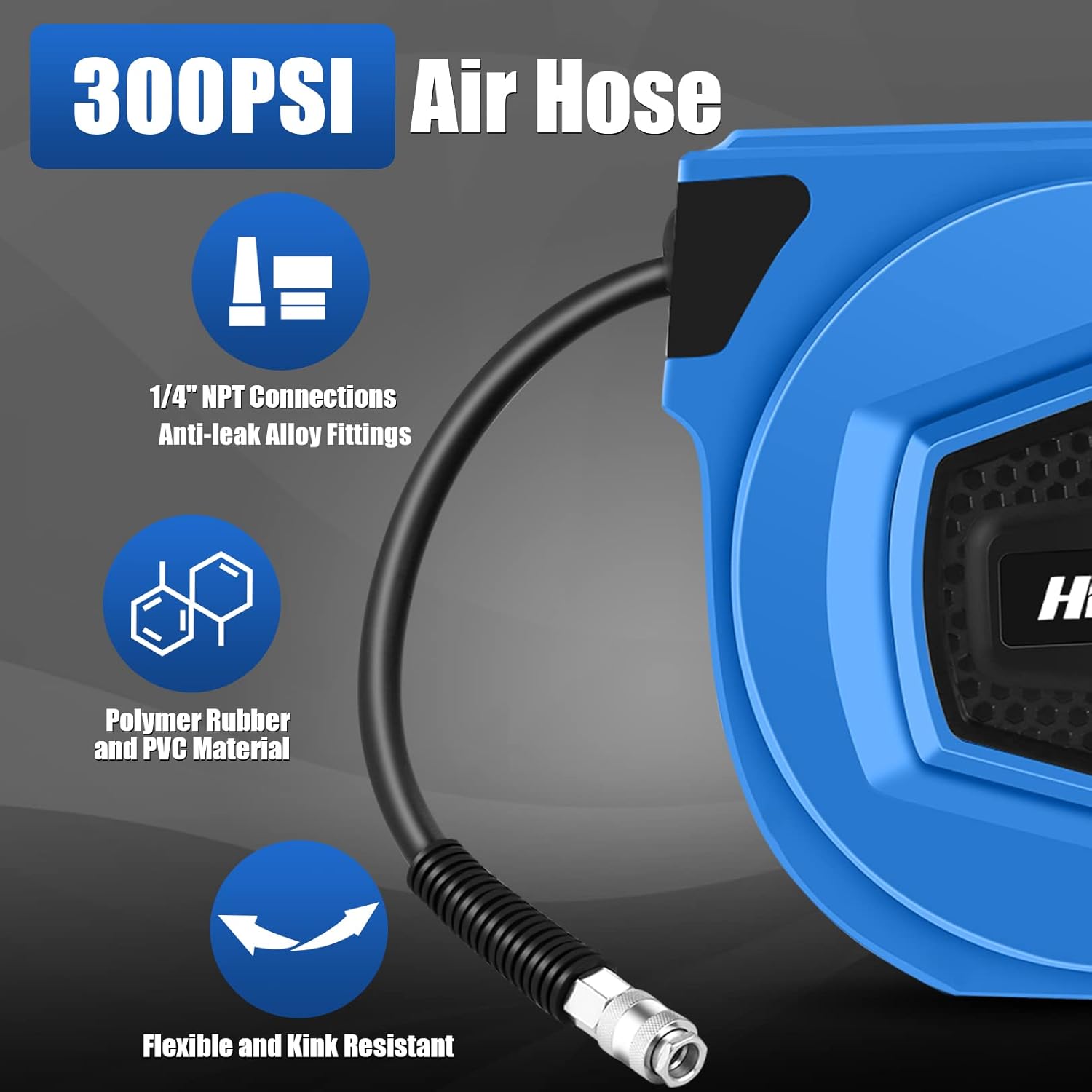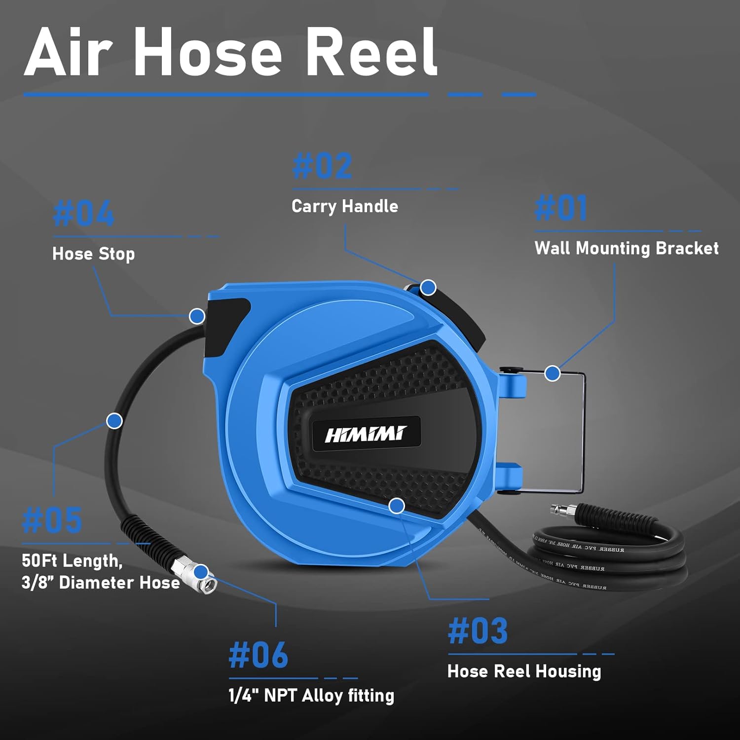 - 【Schlauchaufroller Automatik】Der druckluftschlauch kann einfach abgewickelt und durch leichtes Ziehen und Loslassen automatisch aufgerollt werden. Mit dem Himimi automatisch druckluftschlauch aufroller gehen Arbeiten leicht von der Hand.