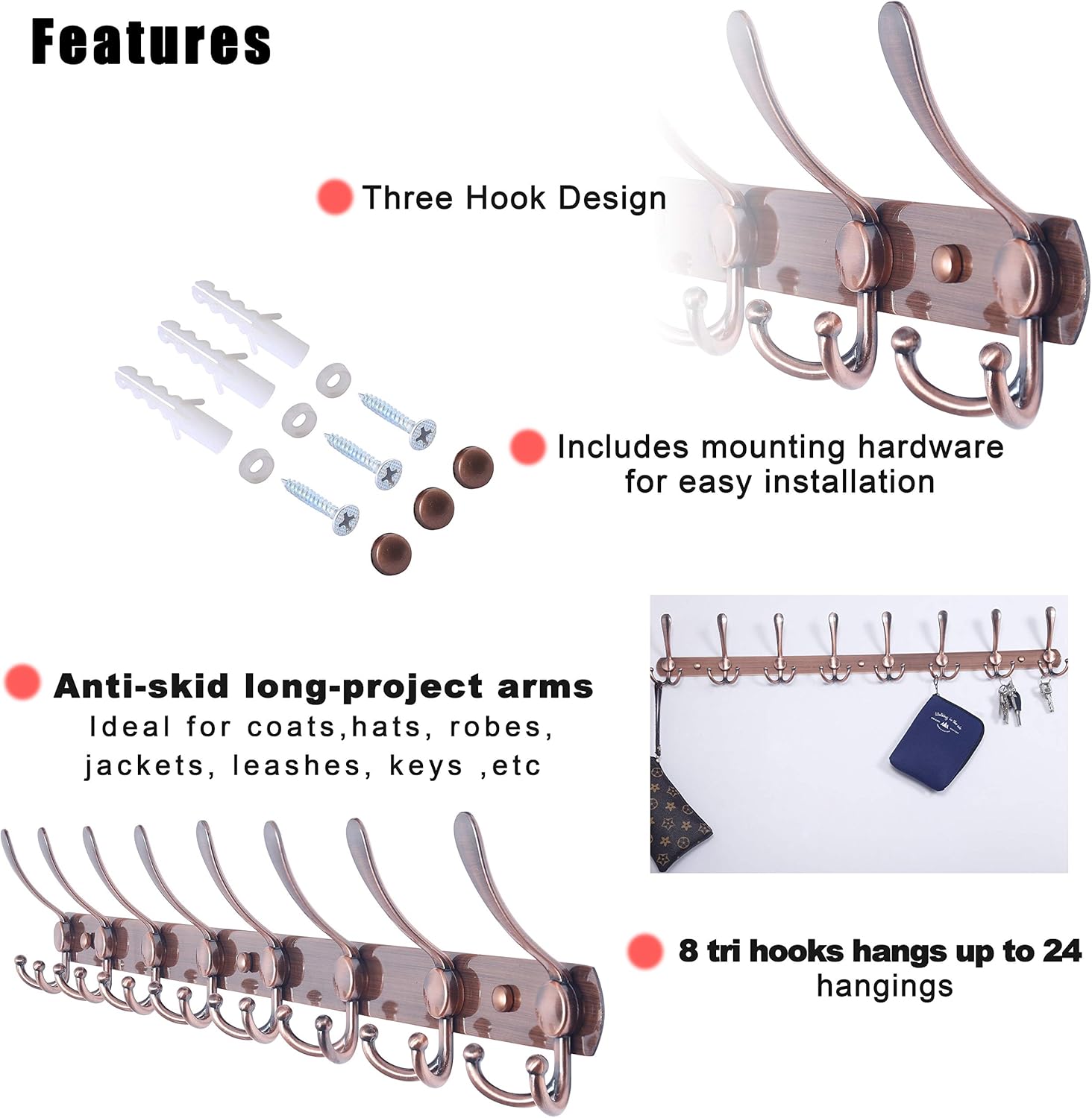 • 5.Die hakenleiste mit 8 dreifachhaken bieten reichlich platz für mäntel, hüte, Jacken, handtücher, handtaschen, schals und bademäntel; ideal für flur, hauswirtschaftsraum, badezimmer, schlafzimmer, garderobe, küche usw.