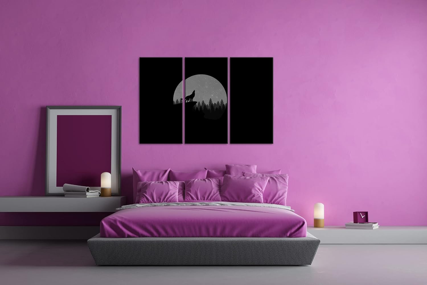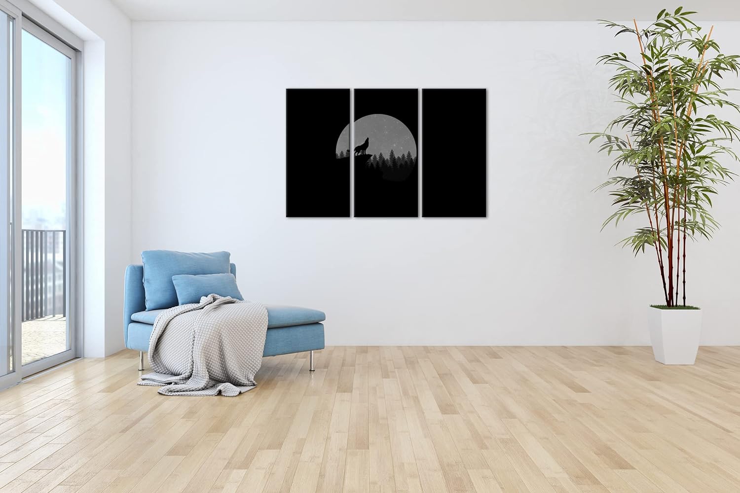 deyoli düsterer einsamer Wolf Format: 3Teilig Effekt: Schwarz&Weiss als Leinwandbild, Motiv fertig g