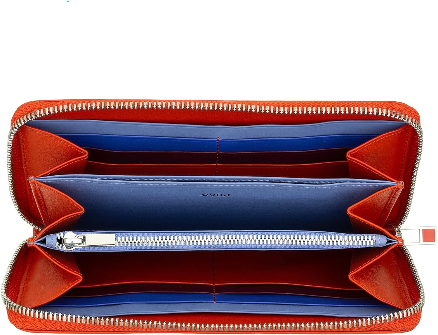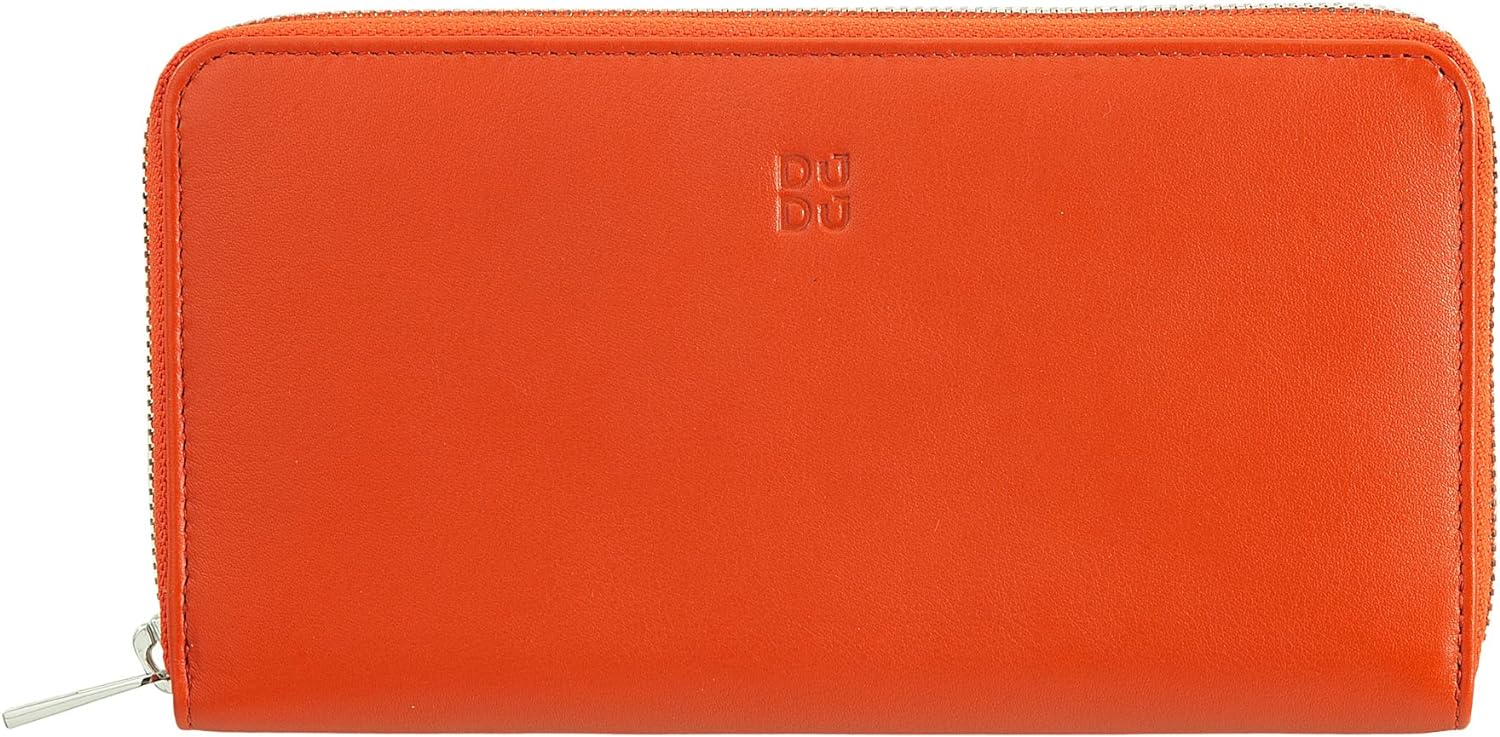 DUDU Grosse Bunte Damenbrieftasche RFID in echtem Leder mit Rundum - Reissverschluss Orange, Orange