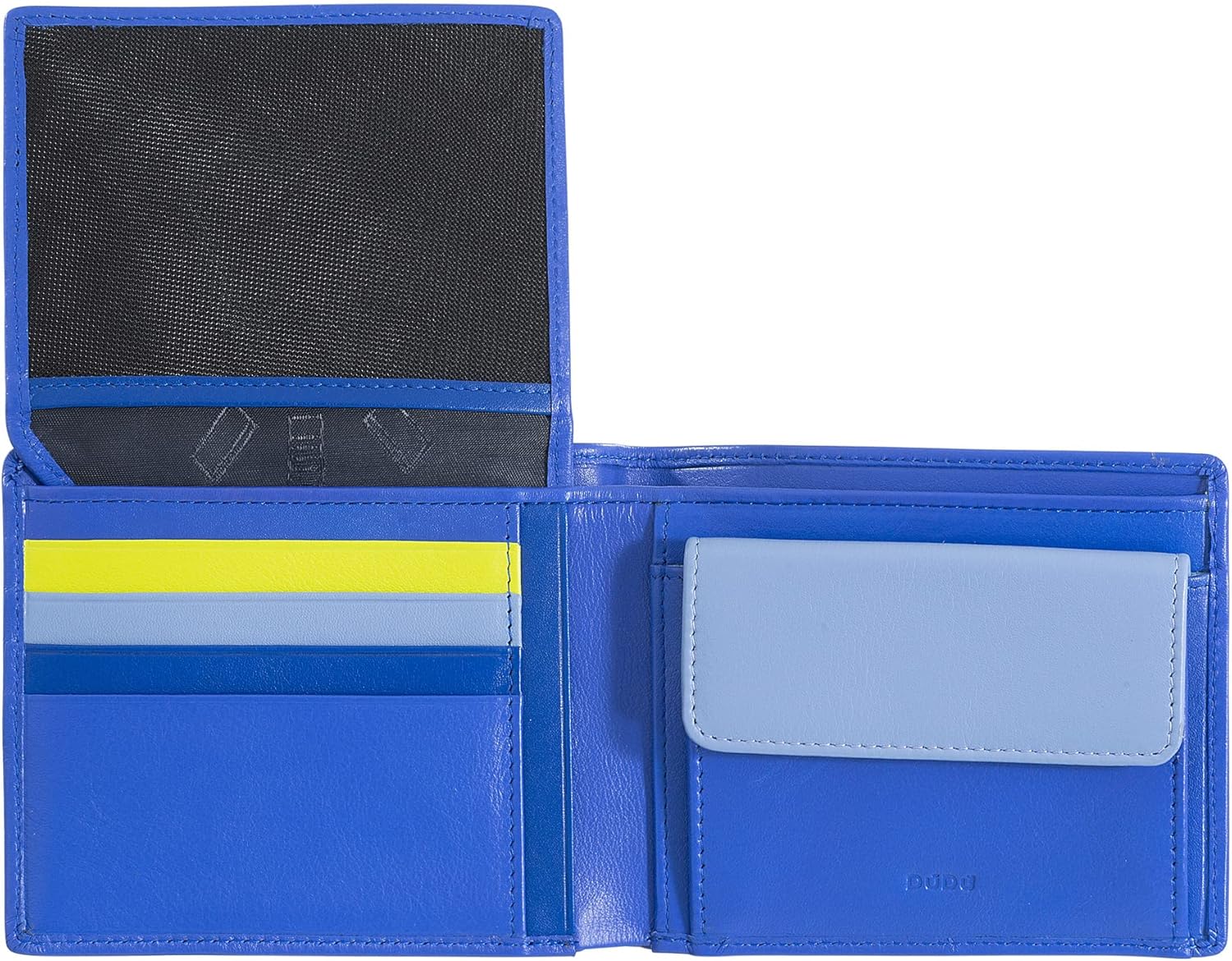 - Weiches mehrfarbiges Herren Portemonnaie RFID in Nappa Kalbsleder im klassischen Design mit internem Münzfach und Klappe. Mehrere Kartensteckfächer. Die perfekte Kombination warmer und kalter Farben macht dieses Portemonnaie einzigartig in seiner Art.