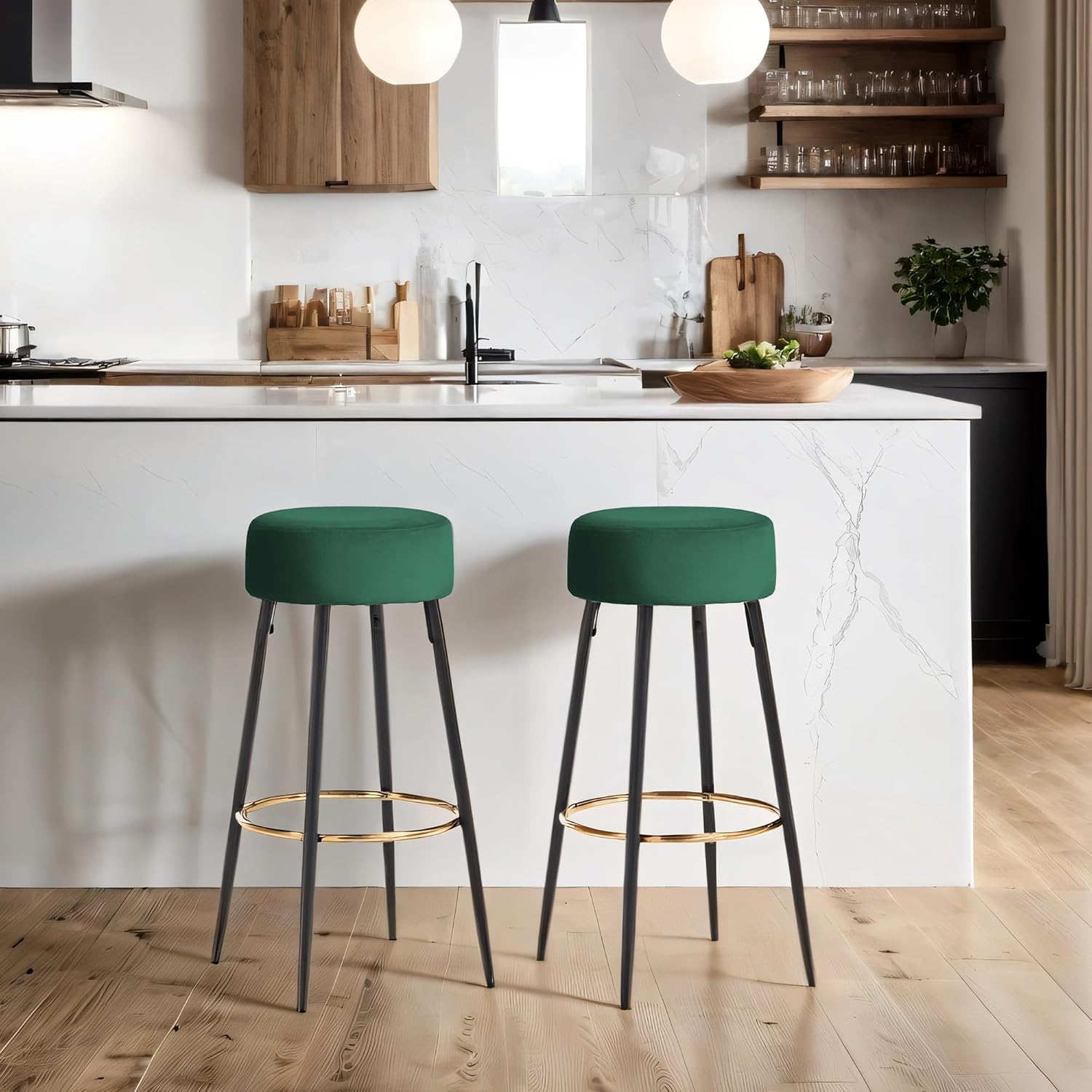 • 【Praktisch】Runde Bistrohocker modern und klassisch, um Ihr Zuhause elegant zu verbessern; Sie sind vielseitig, um Ihre Küchebarhocker, Barstuhl, Frühstücksbarhocker, Kücheninsel-Barhocker, Thekenhocker, Hochocker usw. zu sein