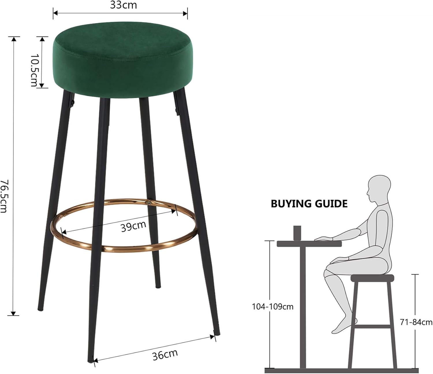 • 【Tolles Sitzgefühl】Der Barstuhl ist aus Samt gefertigt, mit hochdichtem Schwamm gefüllt, weich und atmungsaktiv, und der runde Sitz bietet Ihnen ein angenehmes Sitzgefühl