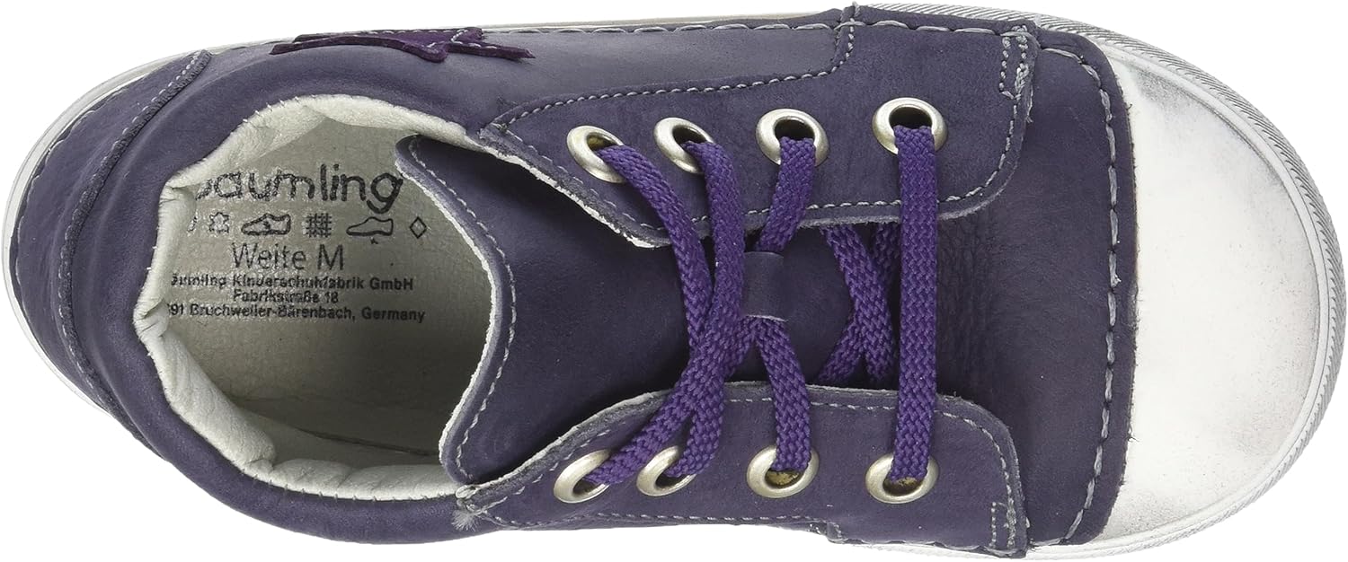 PRODUKTBESCHREIBUNGEN Die Firma Däumling® hat eine neuen Produktlinie entwickelt, bei der die Laufsohle direkt an das Schuhoberteil angenäht wird. Der Schuh kann ohne überflüssige und versteifende Materialien hergestellt werden. Das Ergebnis: ein ultra weicher Kinderschuh, der beim Bewegungsablauf das natürliche Abrollen des Fusses optimal unterstützt - ein Gefühl wie “Barfusslaufen“. Muskeln und Sehnen des Kinderfusses werden auf natürliche Weise gestärkt und es kann sich ein gesundes Laufverhalten entwickeln. Unser Modell “Esther“ ist aus handschuhweichem, hydrophobiertem Nappaleder in den schönsten, trendigsten Frühlingsfarben gefertigt. Eine helle Sternapplikation ziert die Seite und peppt den sportlichen Lauflernschuh kindgerecht auf. In den grossen Ösen lässt sich der breite, helle Schnürsenkel leicht führen und der Schuh kann optimal an jeden Kinderfuss anpassen werden. Das Innenfutter und das herausnehmbare Weichschaum-Fussbett ist komplett in einem neuartigen Hightech-Material des Funktionsfutter-Herstellers “moron“ gearbeitet. Die Microfaser ist absolut chromfrei, hat eine Wasserdampf-Aufnahmefähigkeit, die 8 x höher ist als bei Leder und ist für Allergiker geeignet. Die modisch helle, rutschfeste Sneakersohle mit gummiertem Zehenschutz vervollständigt den neuen Sportschuhtyp von Däumling® Kinderschuhe.