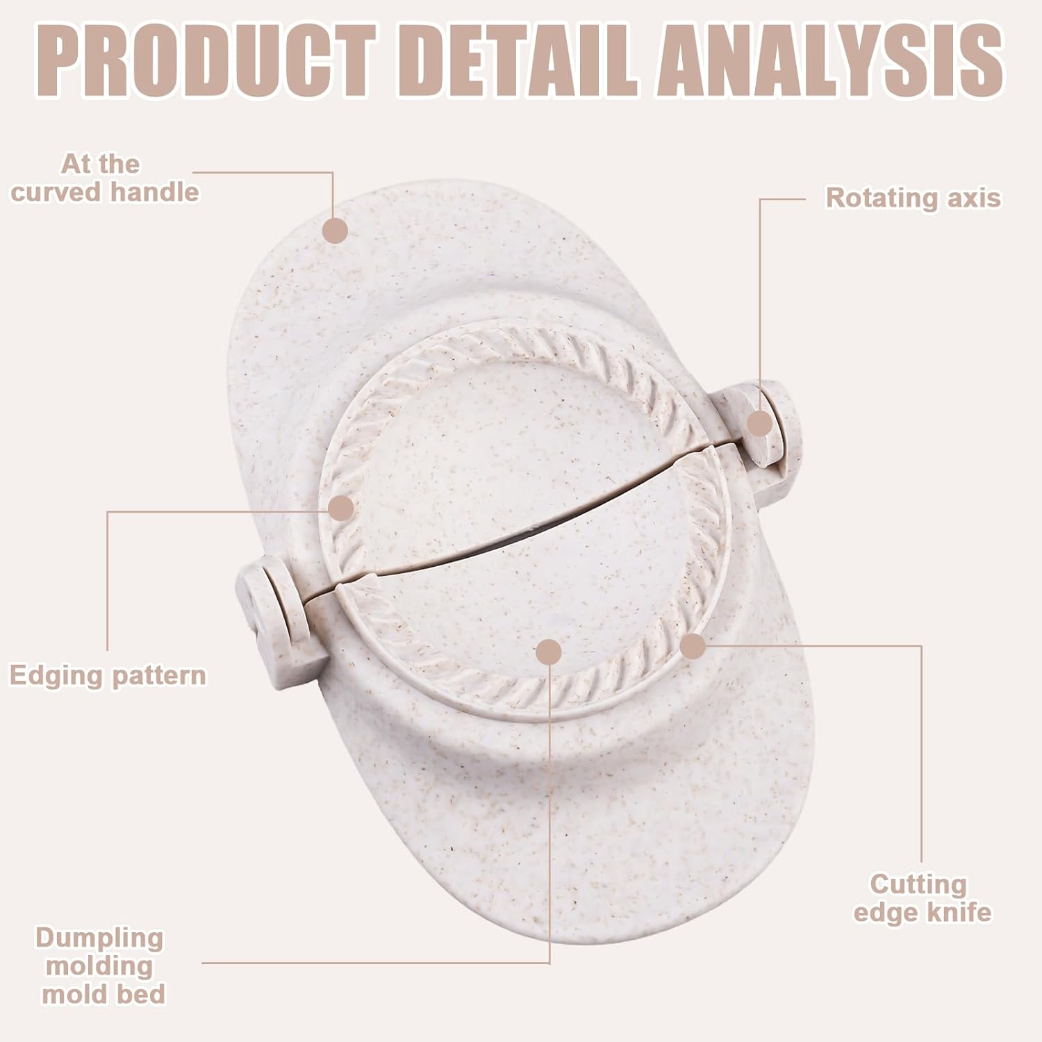 - Zeitsparend und Bequem: Mit diesem Dumpling Maker können Sie mühelos gleichmässige Teigtaschen in kürzester Zeit herstellen. Der runde Dough Cutter sorgt für präzise Teigausschnitte, während die Former die Füllung sicher einschliessen und die