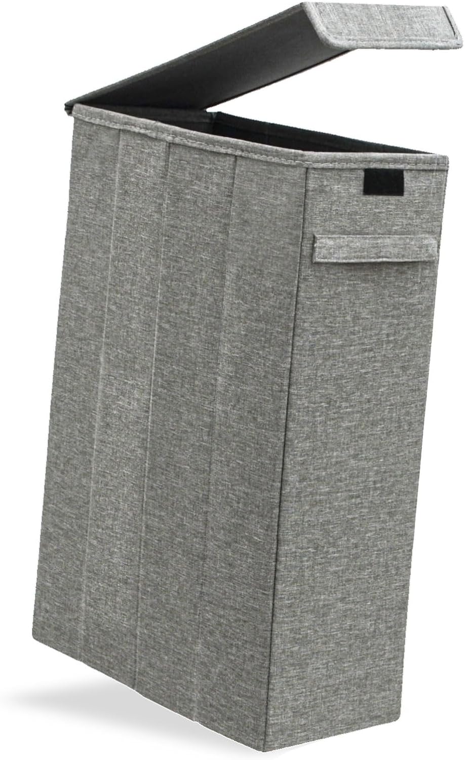 DuneDesign 20 cm Schmaler Wäschekorb mit Deckel - 50L Stabiler Holzrahmen - 20x40x60 Wäschesammler S