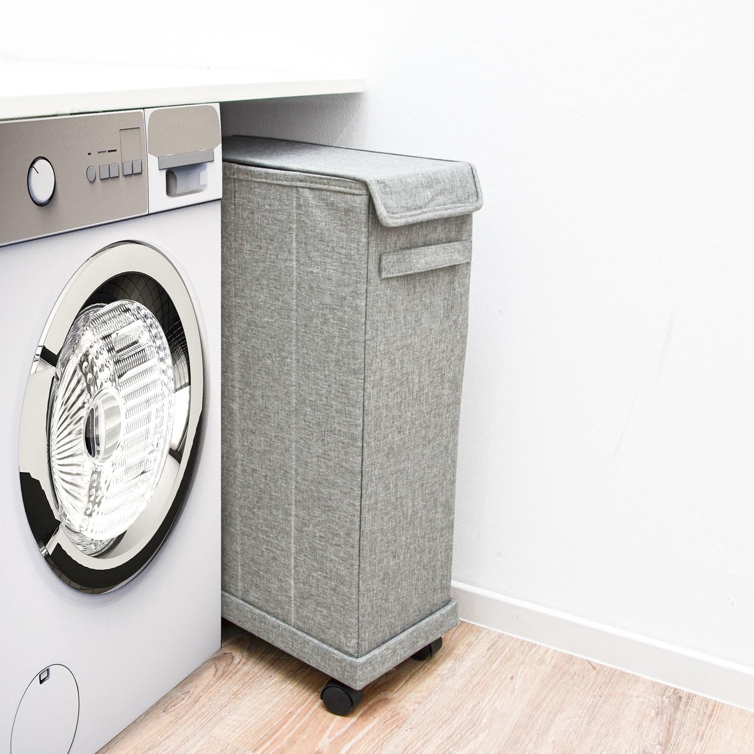 DuneDesign 20 cm Schmaler Wäschekorb mit Rollen - 50L Stabiler Holzrahmen - 20x40x60 Wäschesammler S