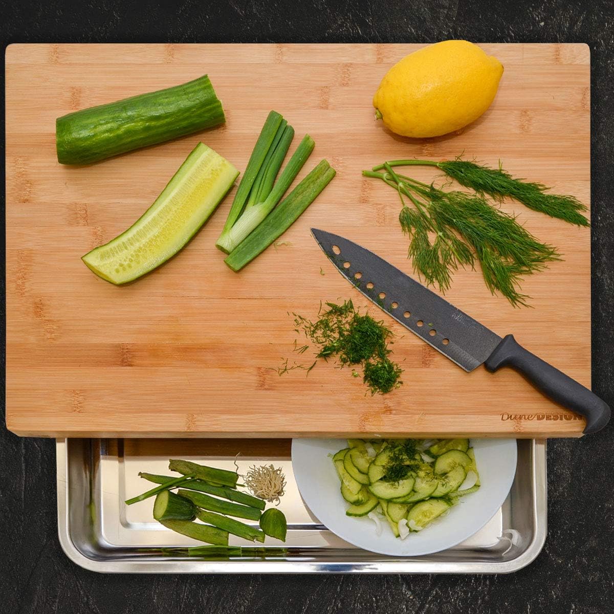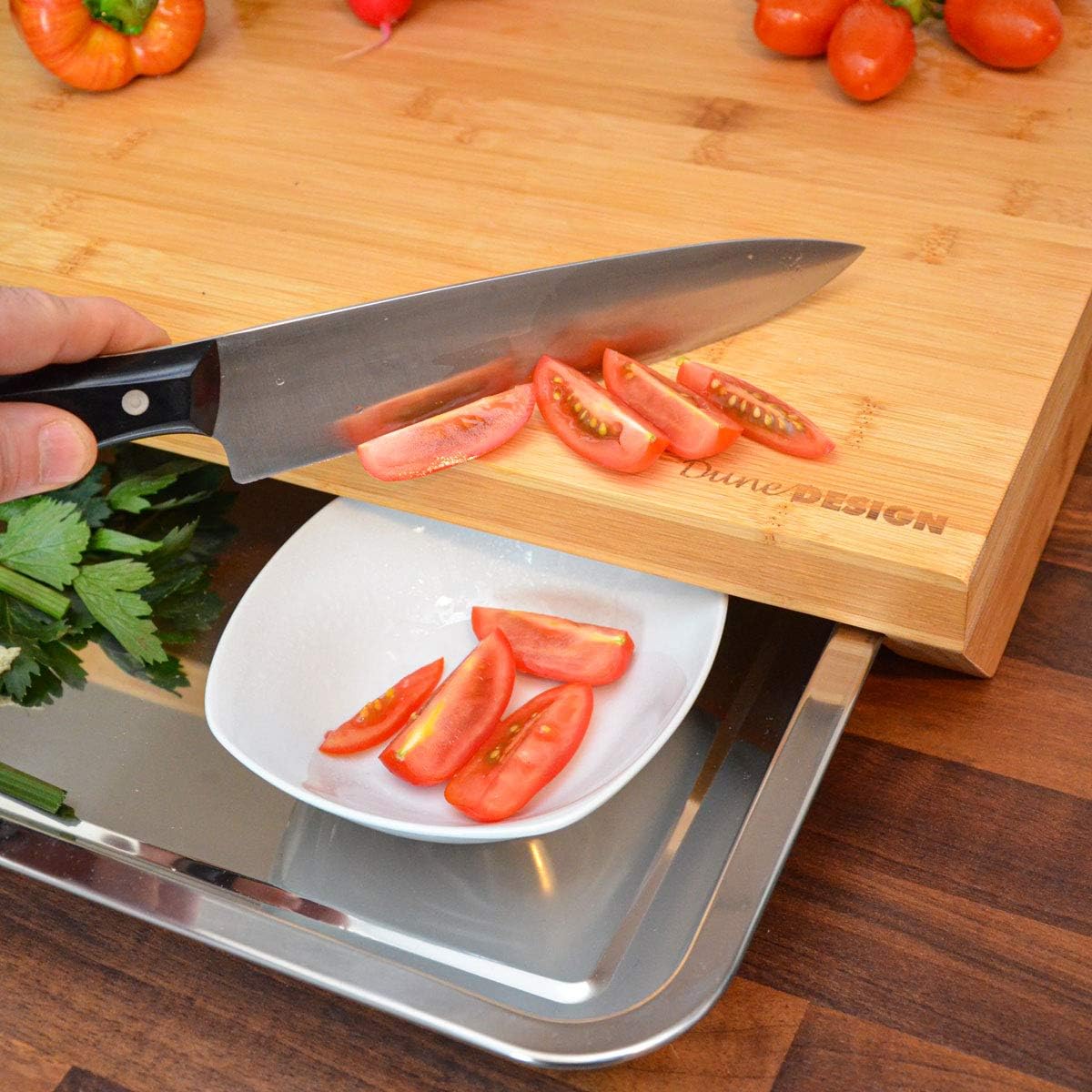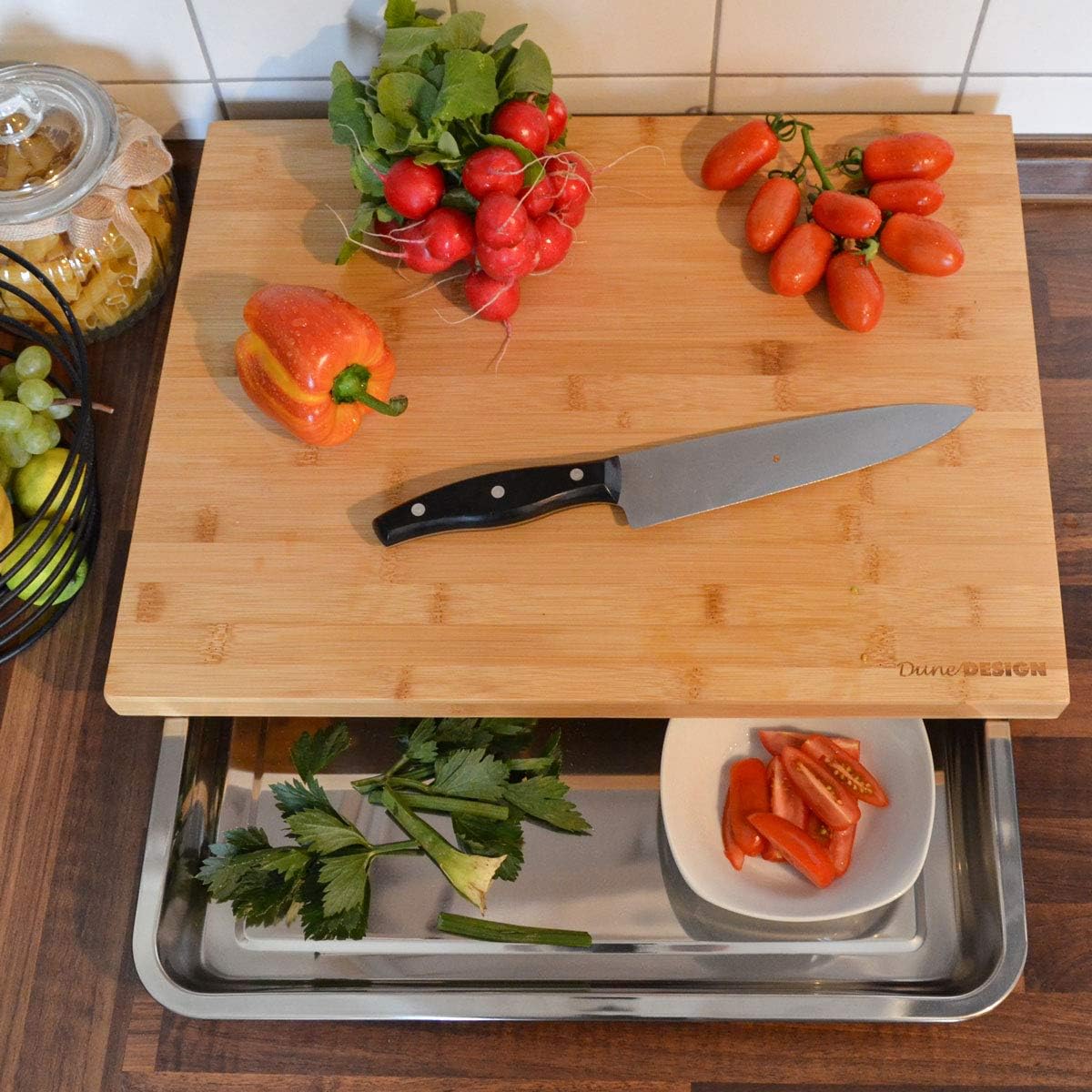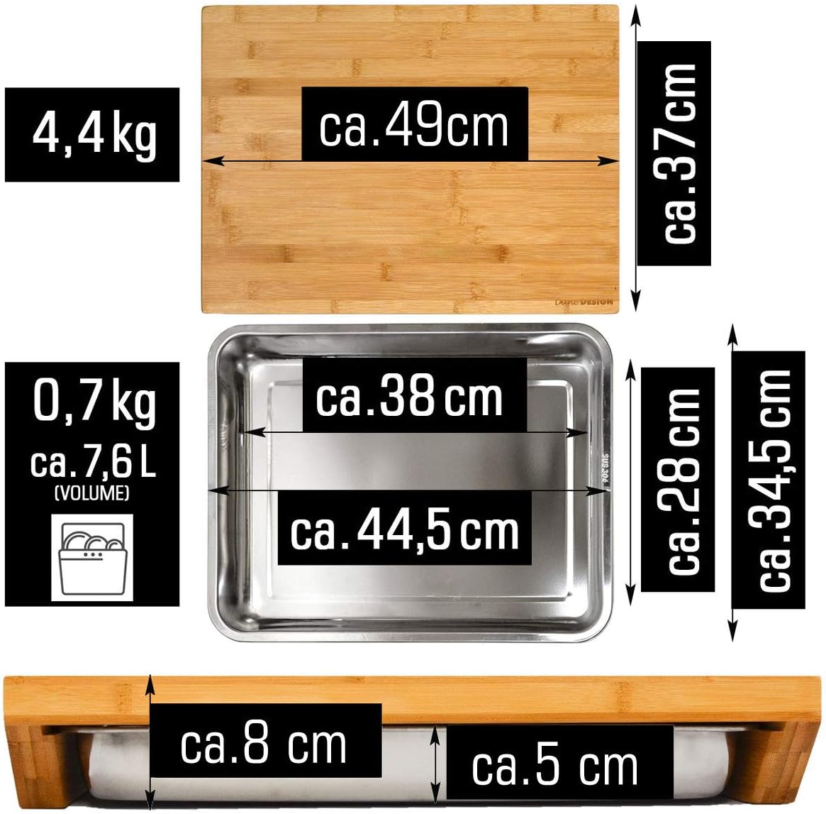 - ANTI-RUTSCH CUTTING BOX - Erhöht & ausziehbar: Der Design Küchen-Block ist 8 cm hoch, dank Metall-Schale wird aus dem Tranchierbrett eine moderne Küchenwerkbank. Perfektes Geschenk für jeden Koch!
