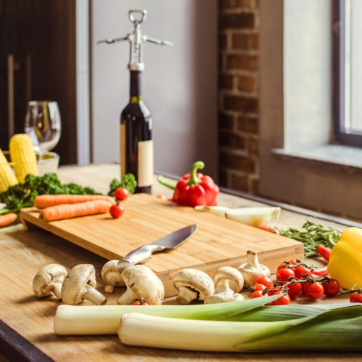 - 100% BAMBOO: HYGIENISCH & MESSERSCHONEND - Kochbrett aus Bambusholz: Küchenhilfe mit System! Antibakteriell, messerschonend - das 3 cm dicke Küchenbrett ist besonders hart, aber weicher als Dein Messer.