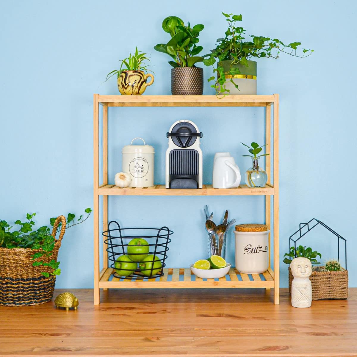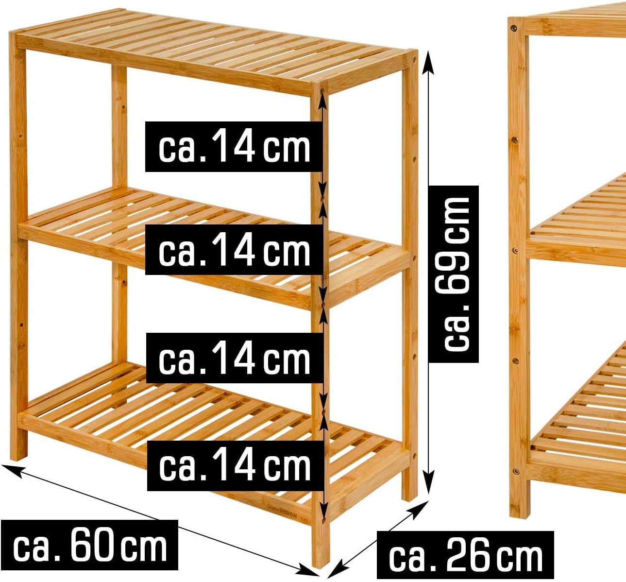 • ÖKOLOGISCHER ANBAU: 100% NACHHALTIG - Das massive Bambusregal ist leicht und flexibel - sein hartes Holz macht es dennoch strapazierfähig. Kleines Küchenregal - ca. 69 x 60 x 26 cm - Bambus Natur.