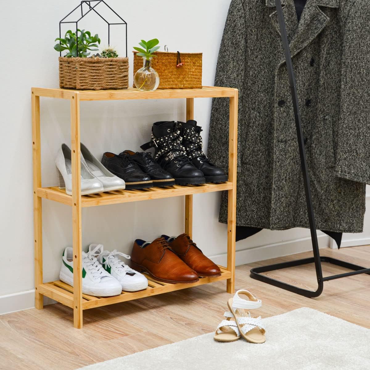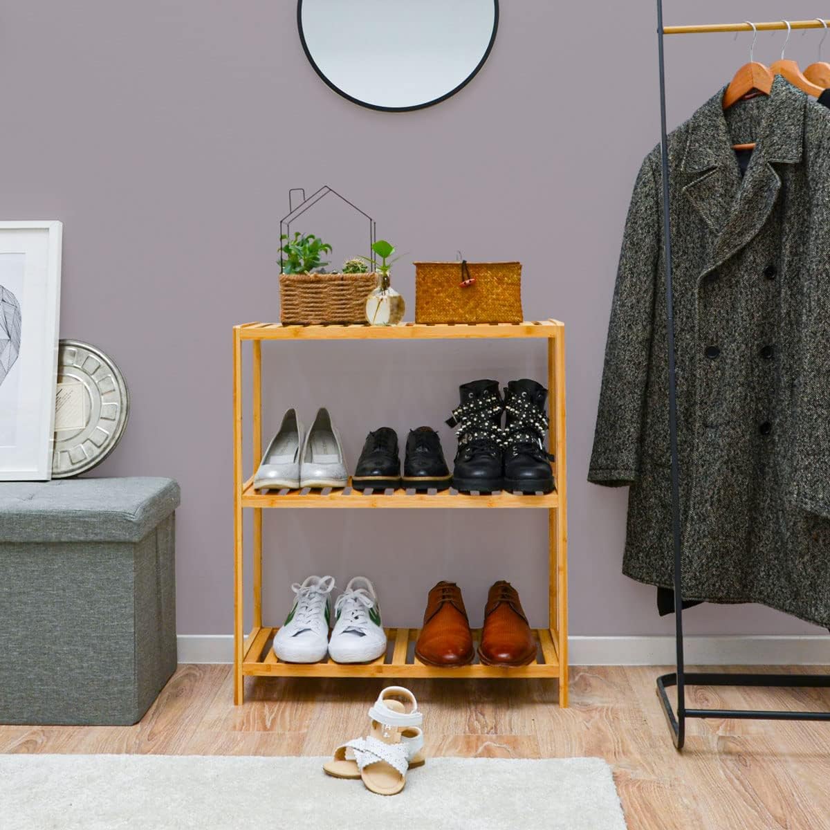 • 69 CM HOCH: EXTRA VIEL STAURAUM - Das Holzregal ist dabei nur 26 cm schmal - ideal für jeden kleinen Flur. Schuhschrank für Stiefel, Badregal für Handtücher, Standregal im Wohnzimmer... Alles im Blick.