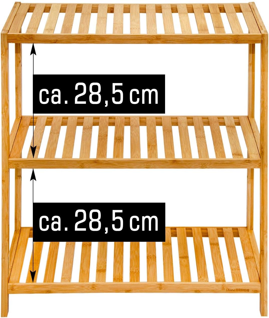 • 60 CM BREIT: PERFEKT FÜR BAD & KÜCHE - Als Badezimmer Regal für Handtücher, Haushaltsregal im Abstellraum oder für Pflanzen auf dem Balkon: Das Regal mit 3 Ablagen aus massivem Bambus passt überall.