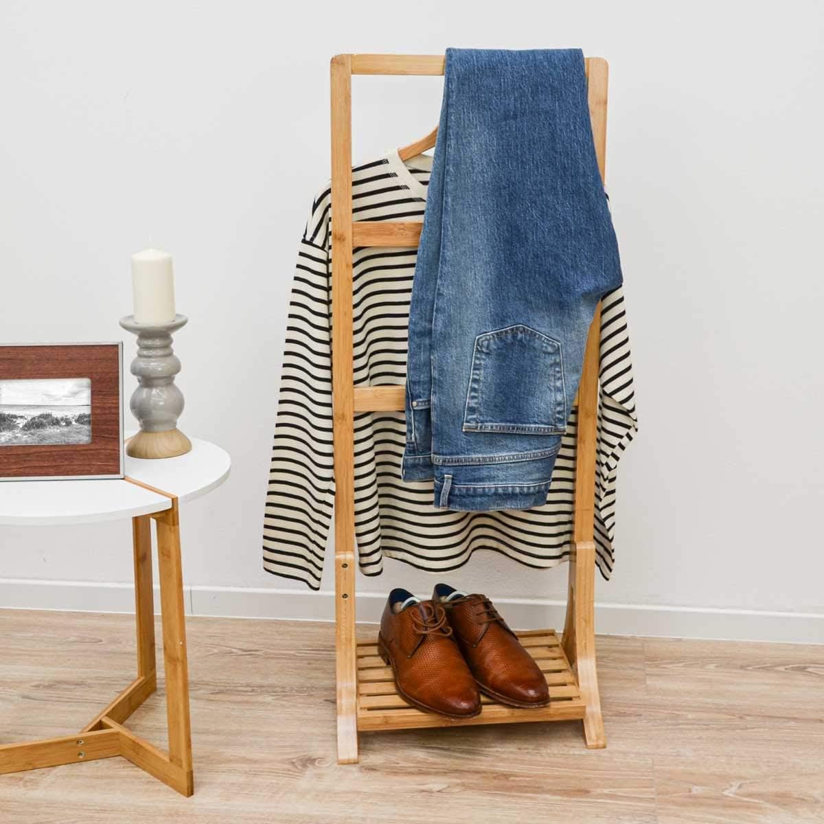 DuneDesign Nachhaltiger Bambus Handtuchständer - 40x30x102 Kleiderständer Bad Handtuchhalter Holz