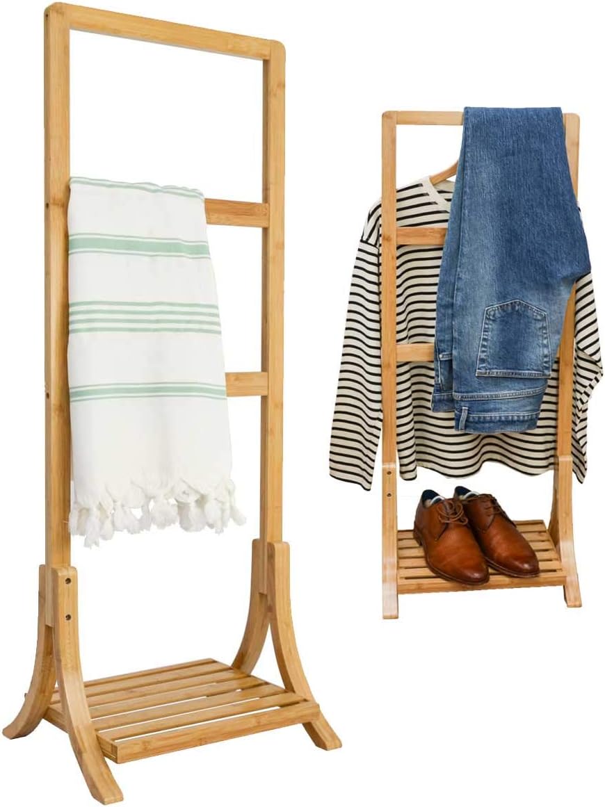 • 100% BAMBUS AUS NACHHALTIGEM ANBAU - Freistehender Handtuchhalter mit 3 Stangen und Ablage. Handtuchständer im Bad oder Kleiderständer im Schlafzimmer: Unser stummer Diener sorgt für optimale Belüftung.