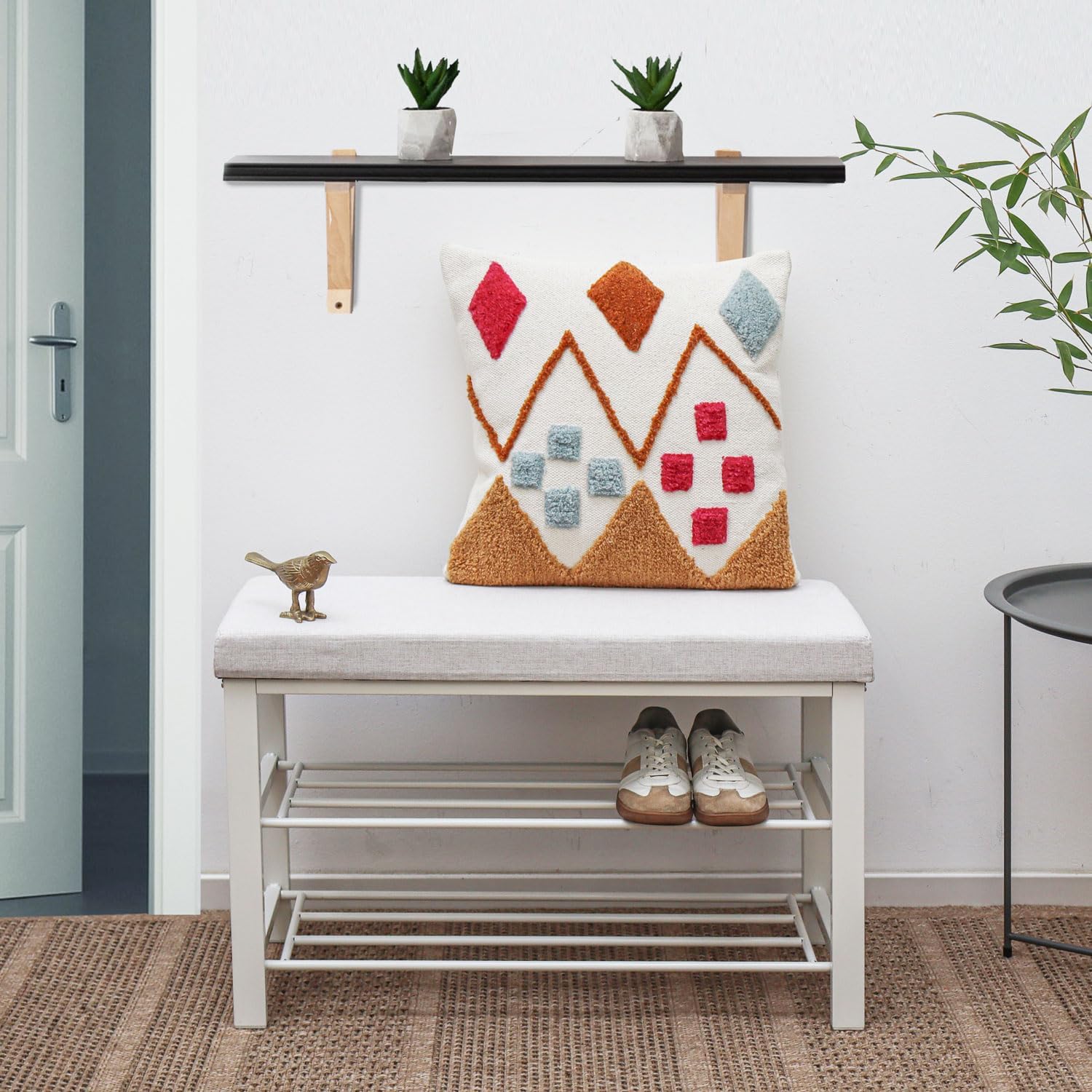- 2-IN-1: SITZBANK TRIFFT SCHUHREGAL - Oben Sitzfläche - unten Schuhablage: Die ideale Schuhbank für alle, die im Flur nicht viel Platz haben, aber trotzdem bequem sitzen und Ordnung halten möchten.