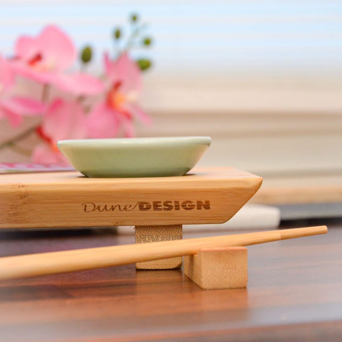 - SCHALEN & ESSSTÄBCHEN INKLUSIVE - Japanischer Stil beim Servieren: Brett mit passenden Vertiefungen für Dipschalen & Essstäbchen. Beim Essen können die Chopsticks auf den Bänkchen abgelegt werden.