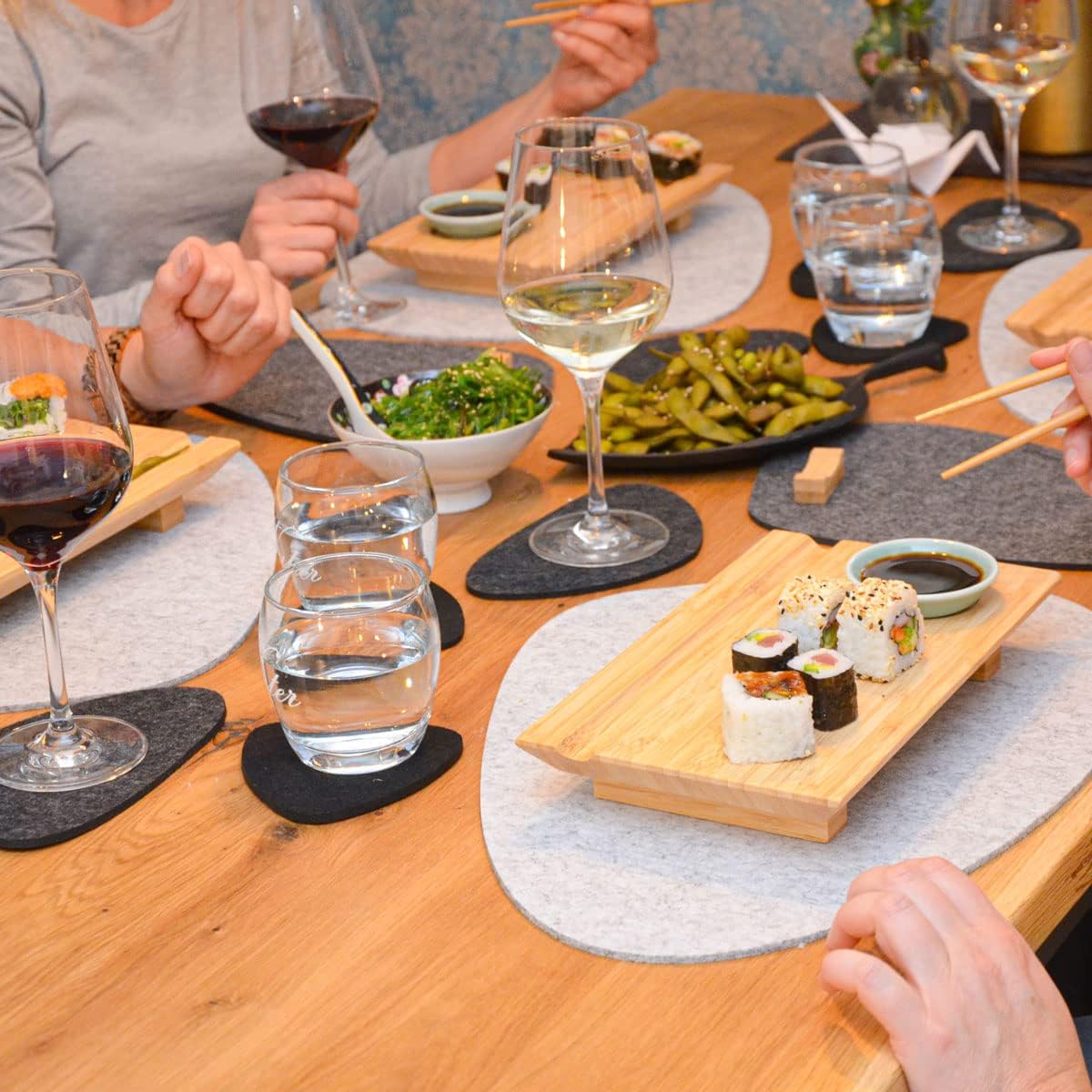 - SUSHI GESCHENK SET FÜR 4 PERSONEN - Selbstgemacht oder bestellt: Asiatisches Geschirr macht jedes Essen zum Ereignis. Die Servierplatte aus Holz (ca. 27 x 16 x 4 cm) ist extra strapazierfähig & pflegeleicht.