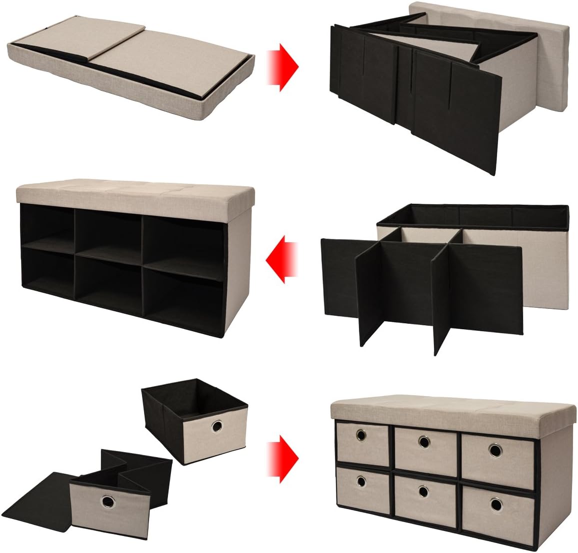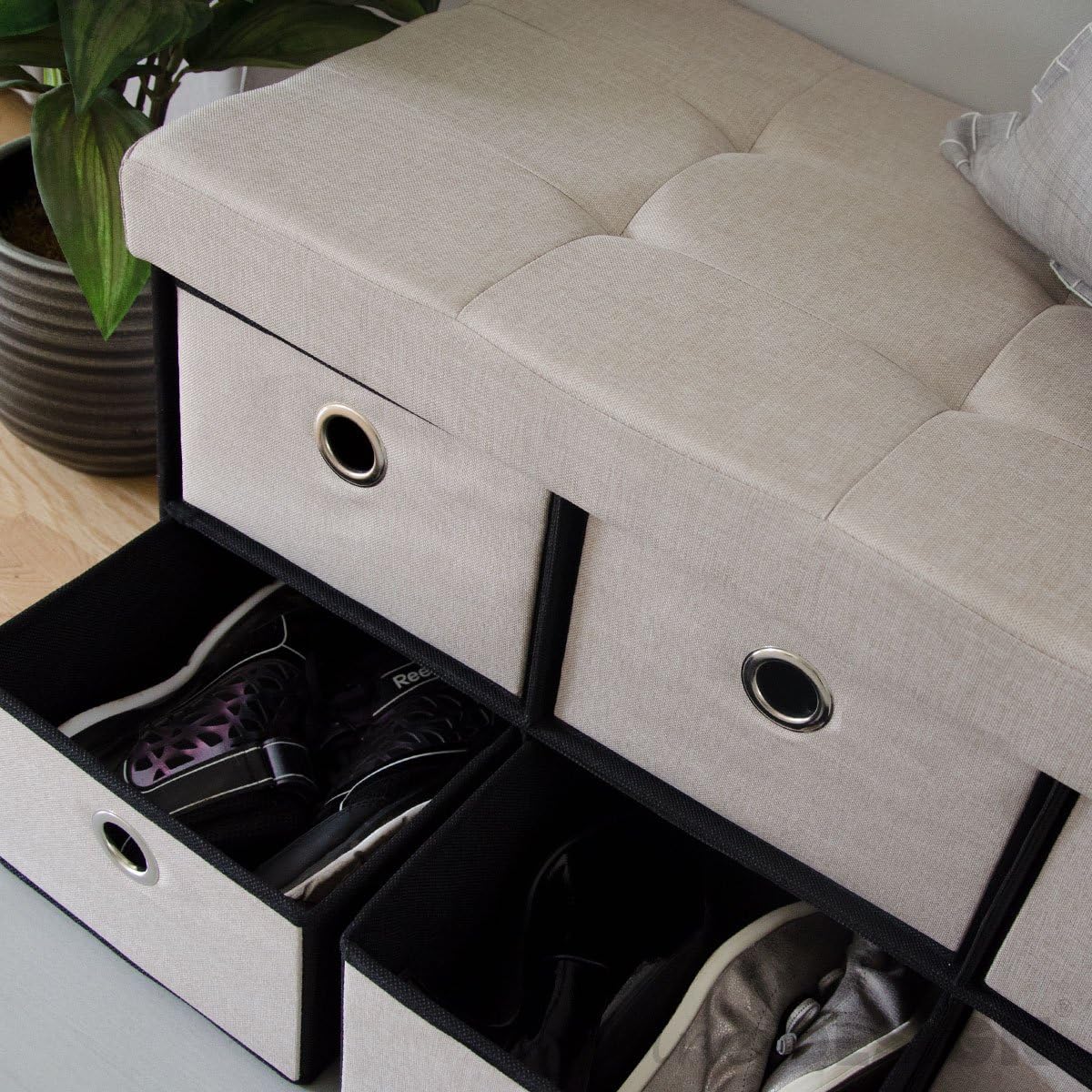 - HÖCHSTE QUALITÄT: Die 6mm starken MDF-Platten der Sitzkommode sorgen für höchste Stabilität. Die faltbare Sitzbox ist bis 250kg belastbar. Der abnehmbare Deckel ist mit dichtem Schaumstoff gut gepolstert und verleiht dem Sitzpuff extra Komfort