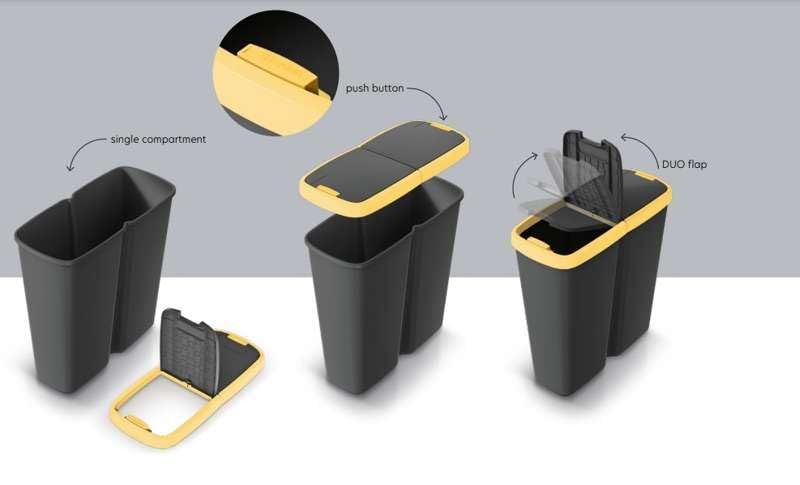 - Mülleimer Duo wird nicht nur die Abfalltrennung erleichtern, sondern auch eine bequeme Nutzung von beiden Seiten ermöglichen. Dieses Einkammer-Modell mit zwei unabhängigen Deckeln ist die ideale Lösung für Bürobereiche, in denen eine effiziente