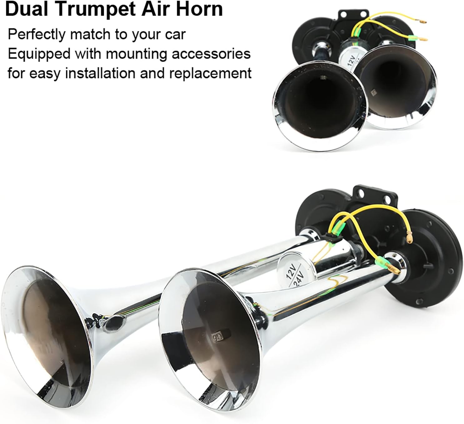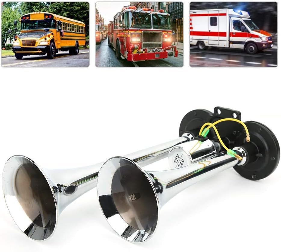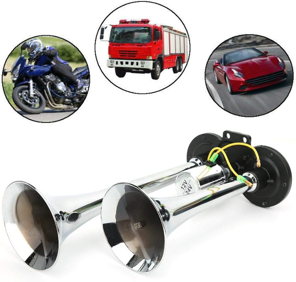 • ★ Hochwertiges Material ----- 100% hochwertiges Material. Das Doppeltrompeten-Lufthorn besteht aus hochwertigen ABS-Materialien, um maximale Festigkeit und Haltbarkeit für eine lange Lebensdauer zu gewährleisten.