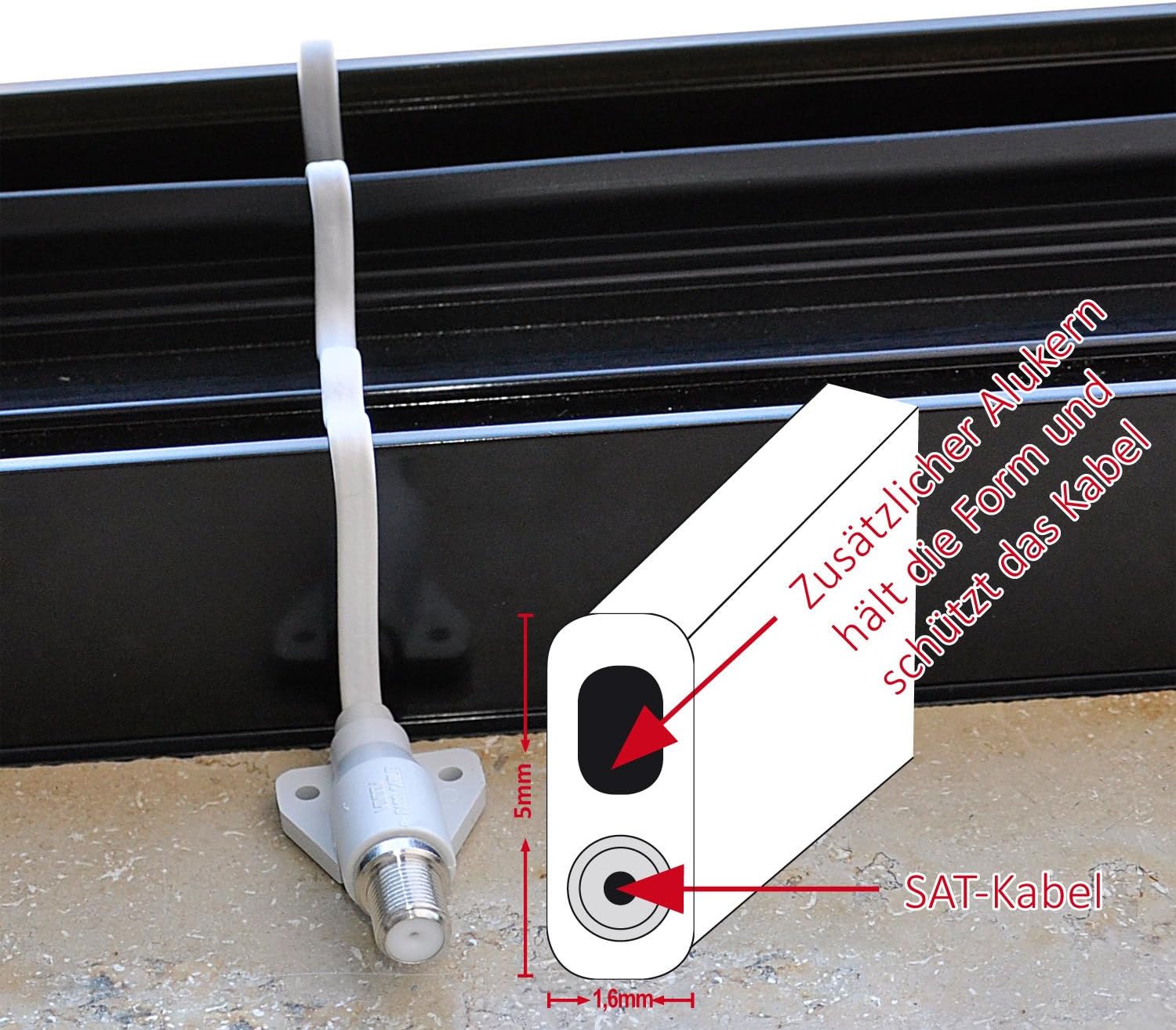 • ✓ Eingebauter Alu-Kern schützt das flache Koaxkabel vor mechanischer Belastung und hält die dem Rahmen angepasste Form