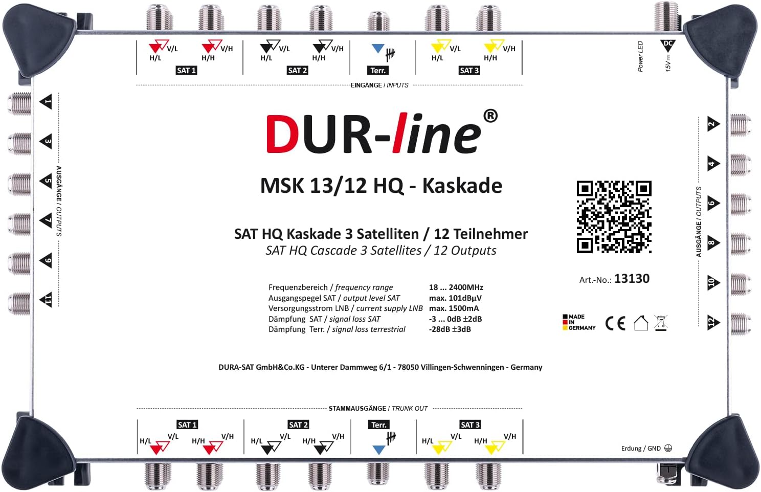 - BETRIEB AUCH ALS MULTISCHALTER MÖGLICH (Standalone) > Mit Netzteil kann die Kaskade auch als Multischalter betrieben werden (Netzteil nicht im Lieferumfang enthalten optional DUR-line NT 15-3300F)